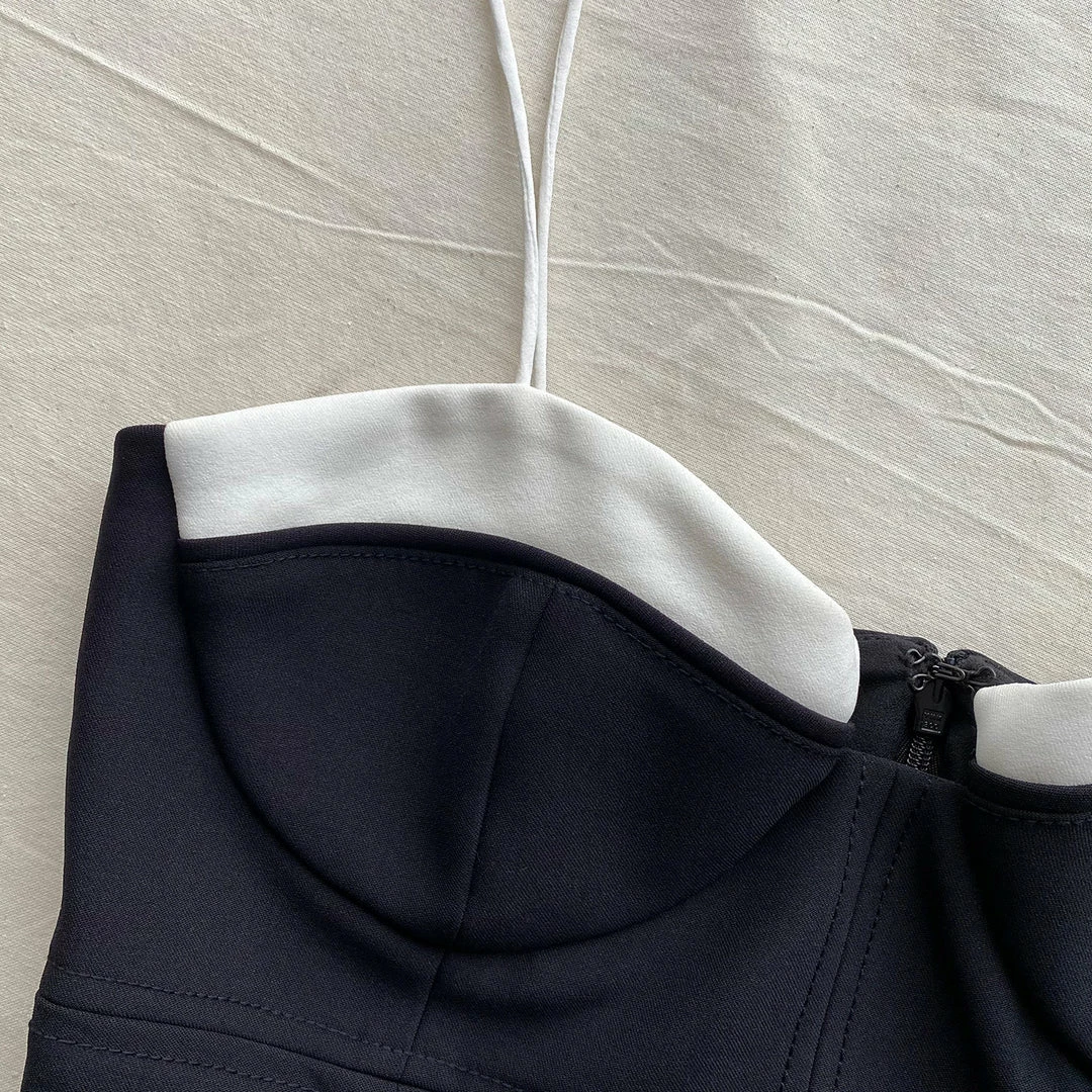 Self-portrait Black Bonded Crepe Contrast Mini Dress READY TO WEAR