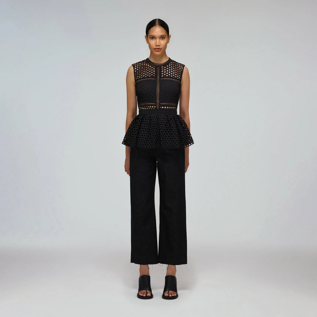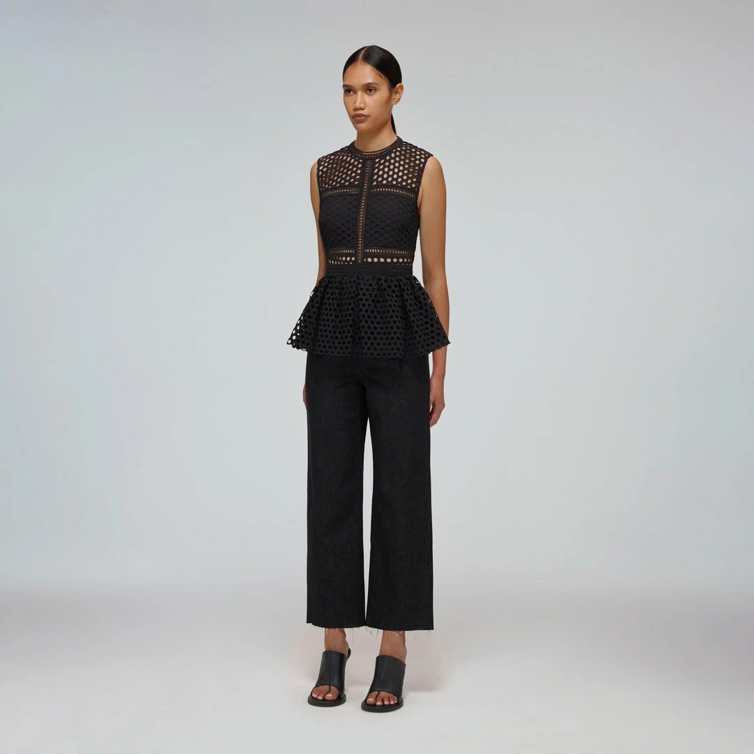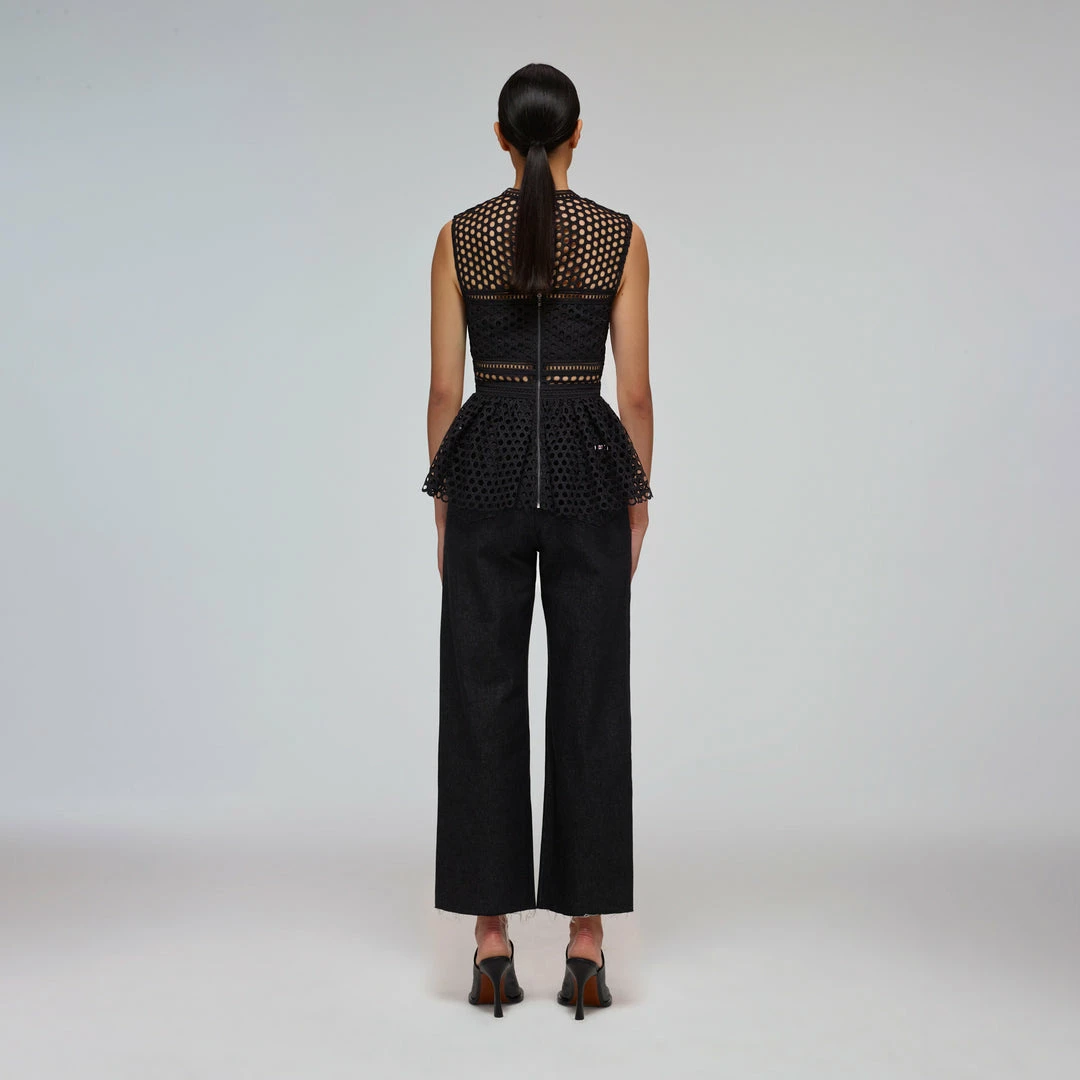 Self-portrait Black Guipure Lace Peplum Top READY TO WEAR