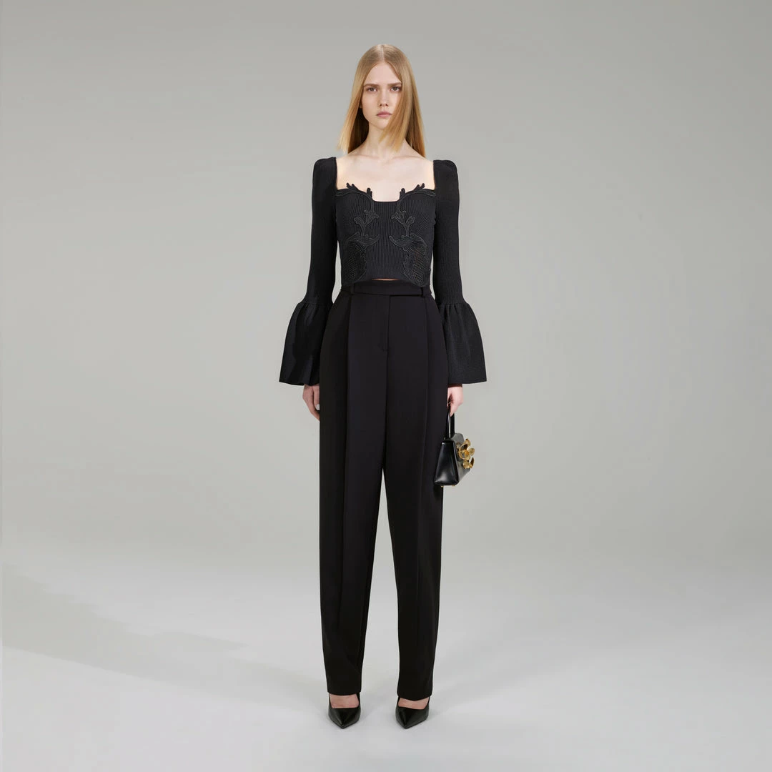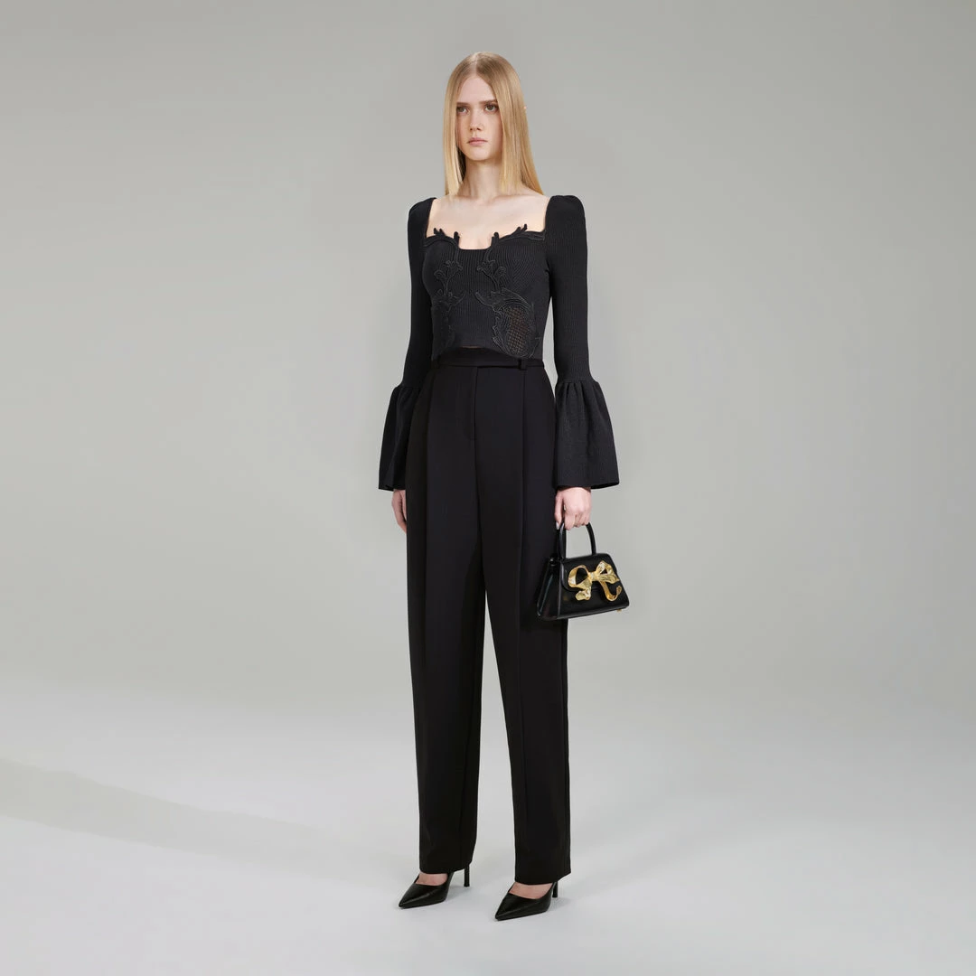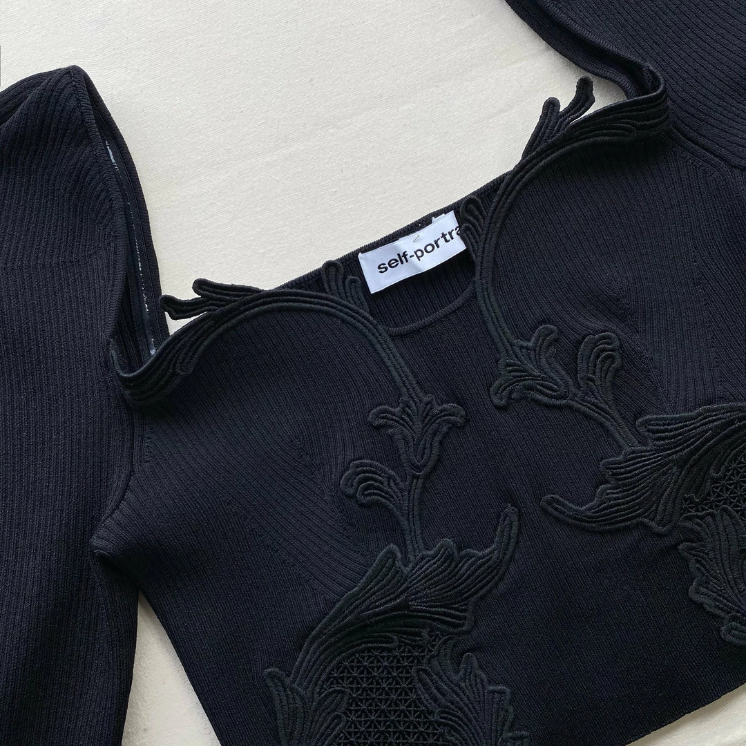 Self-portrait Black Lace Insert Ribbed Knit Top NEW ARRIVALS