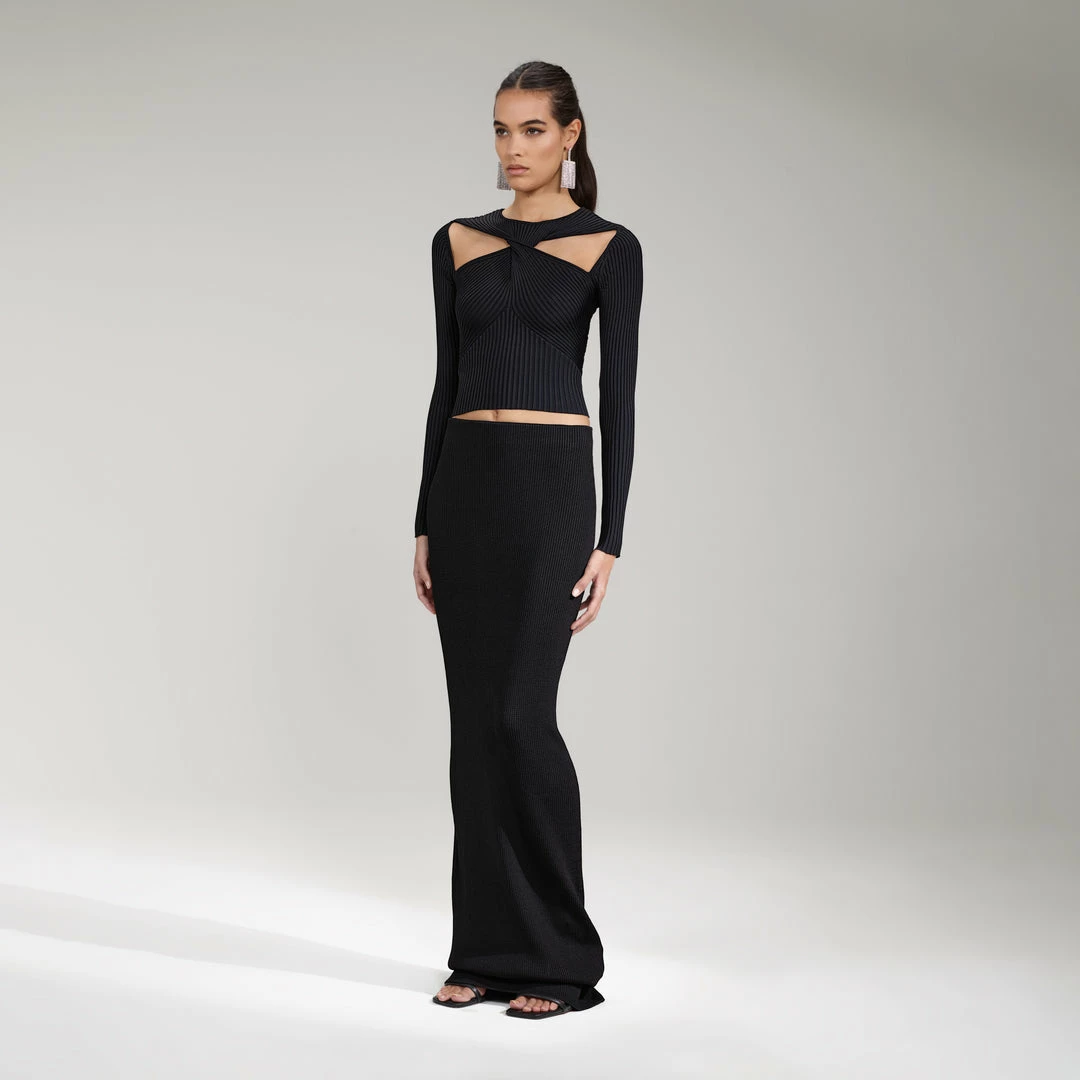 Self-portrait Black Ribbed Knit Cut Out Top NEW ARRIVALS