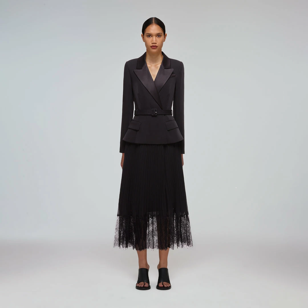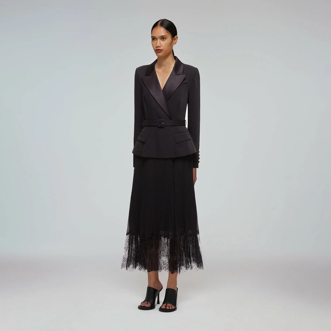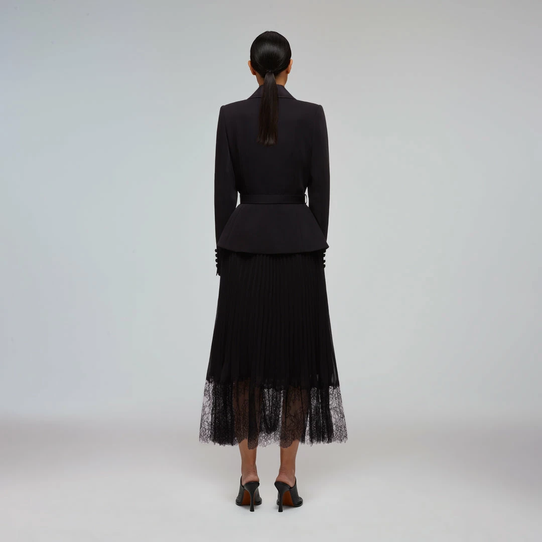Self-portrait Black Tailored Crepe And Chiffon Midi Dress READY TO WEAR