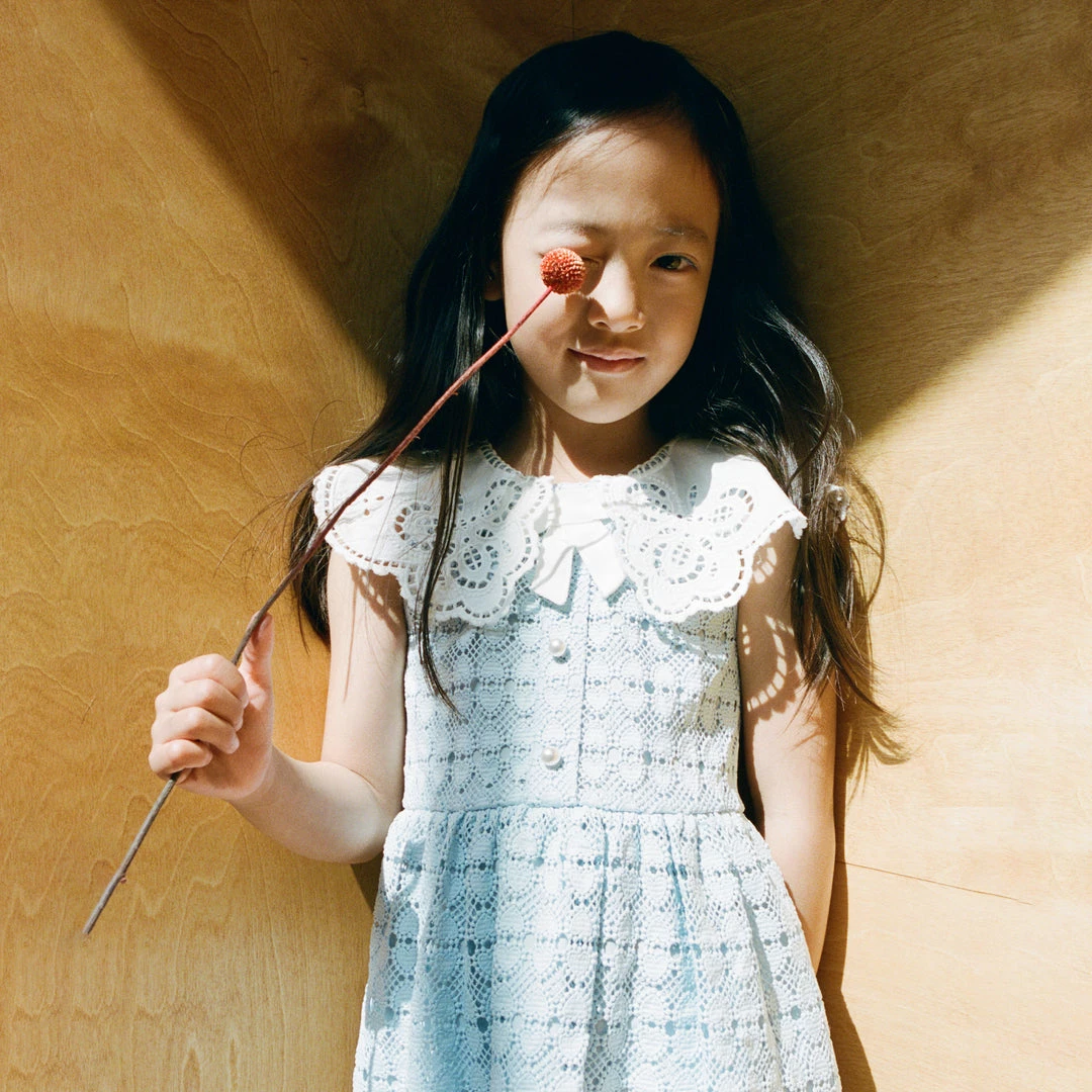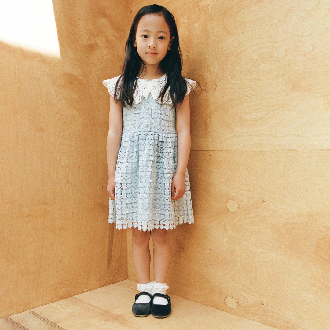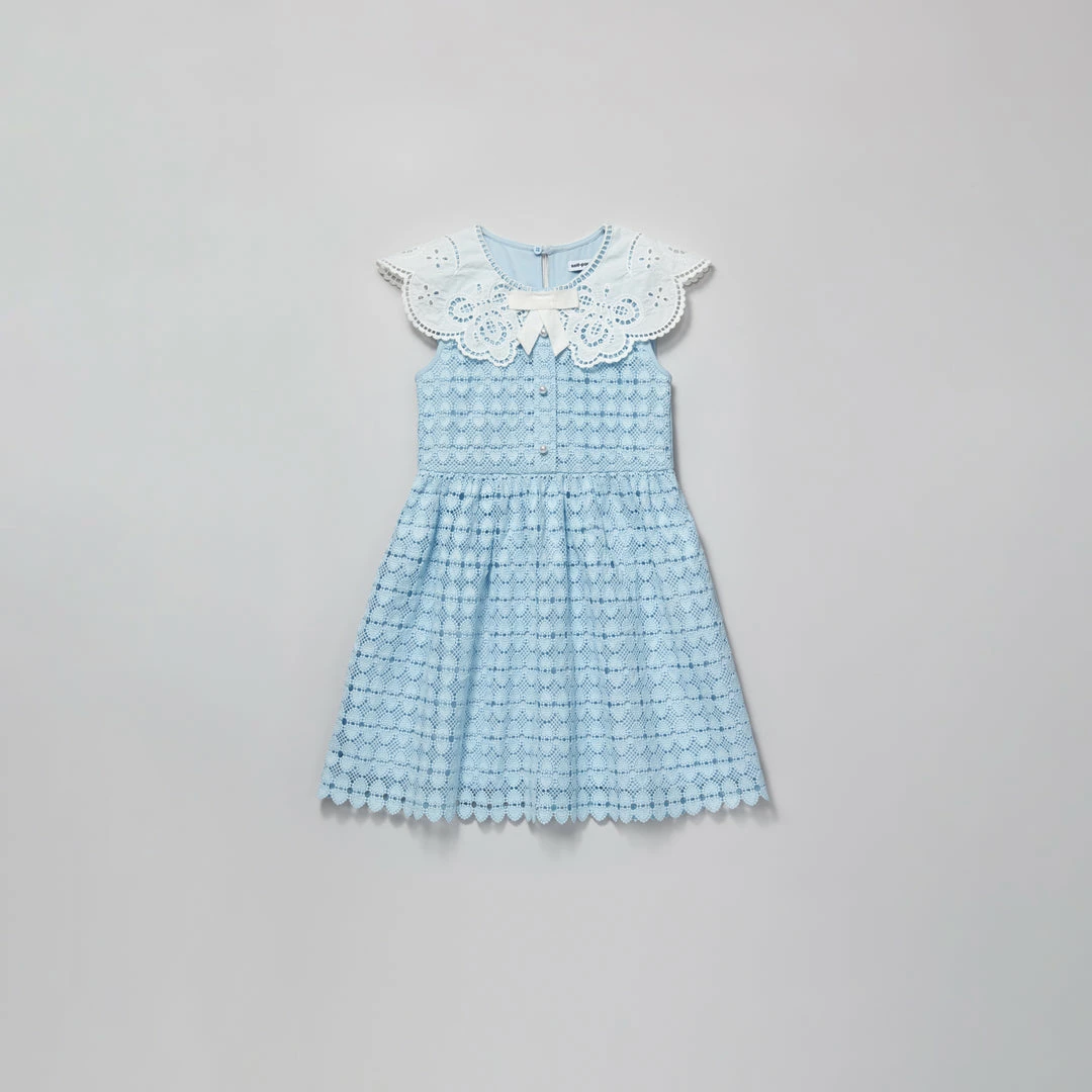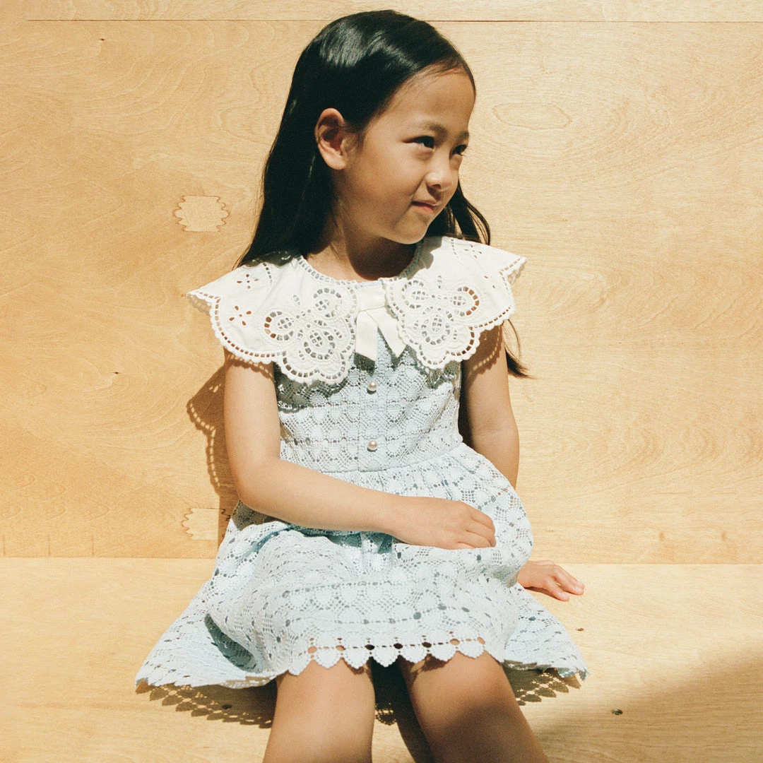 Self-portrait Blue Heart Lace Broderie Collar Dress KIDS