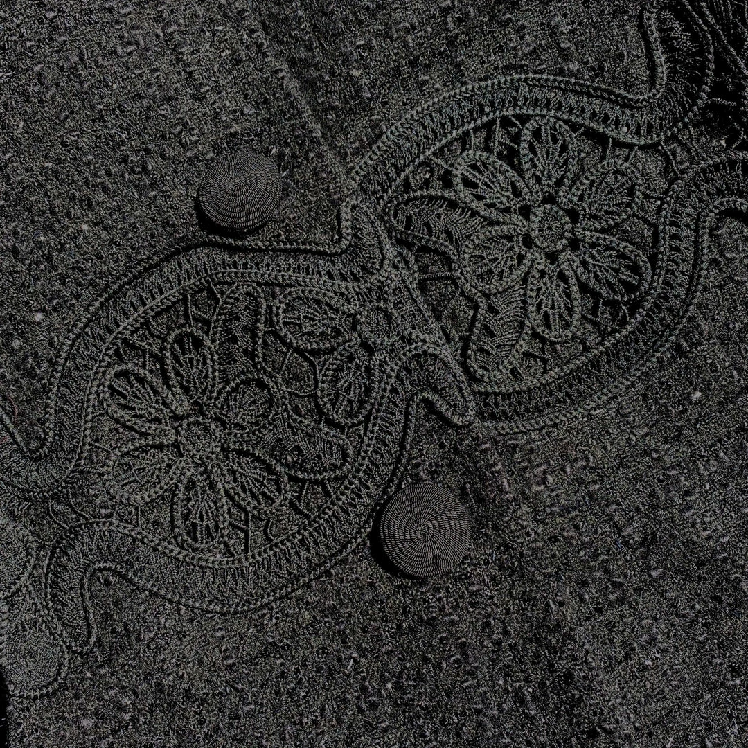 This black jacket is cut from boucle. It is designed with a lace panel and front flap pockets. It features a collar, removable shoulder pads and buttons through to the hem. Check the Size Guide to find your perfect fit.