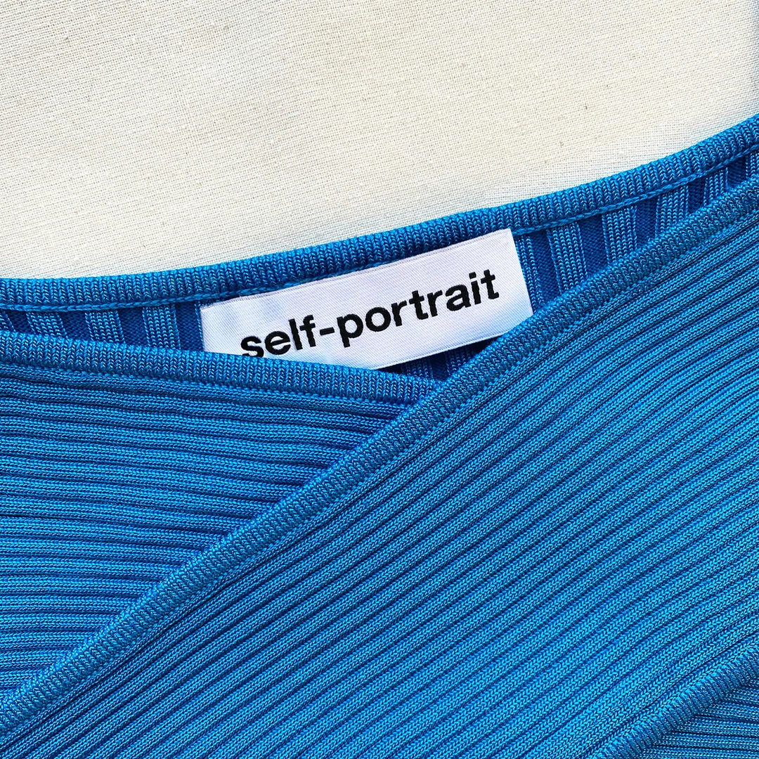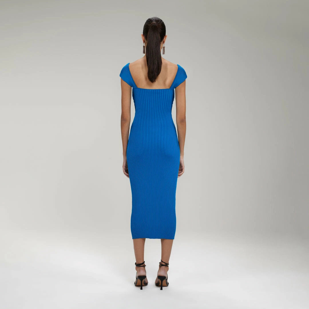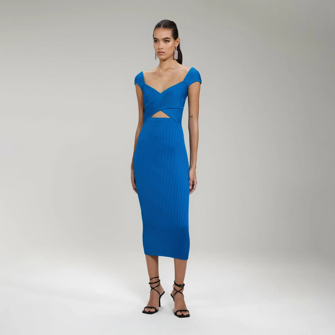 Self-portrait Bright Blue Ribbed Knit Crossover Bust Midi Dress NEW ARRIVALS