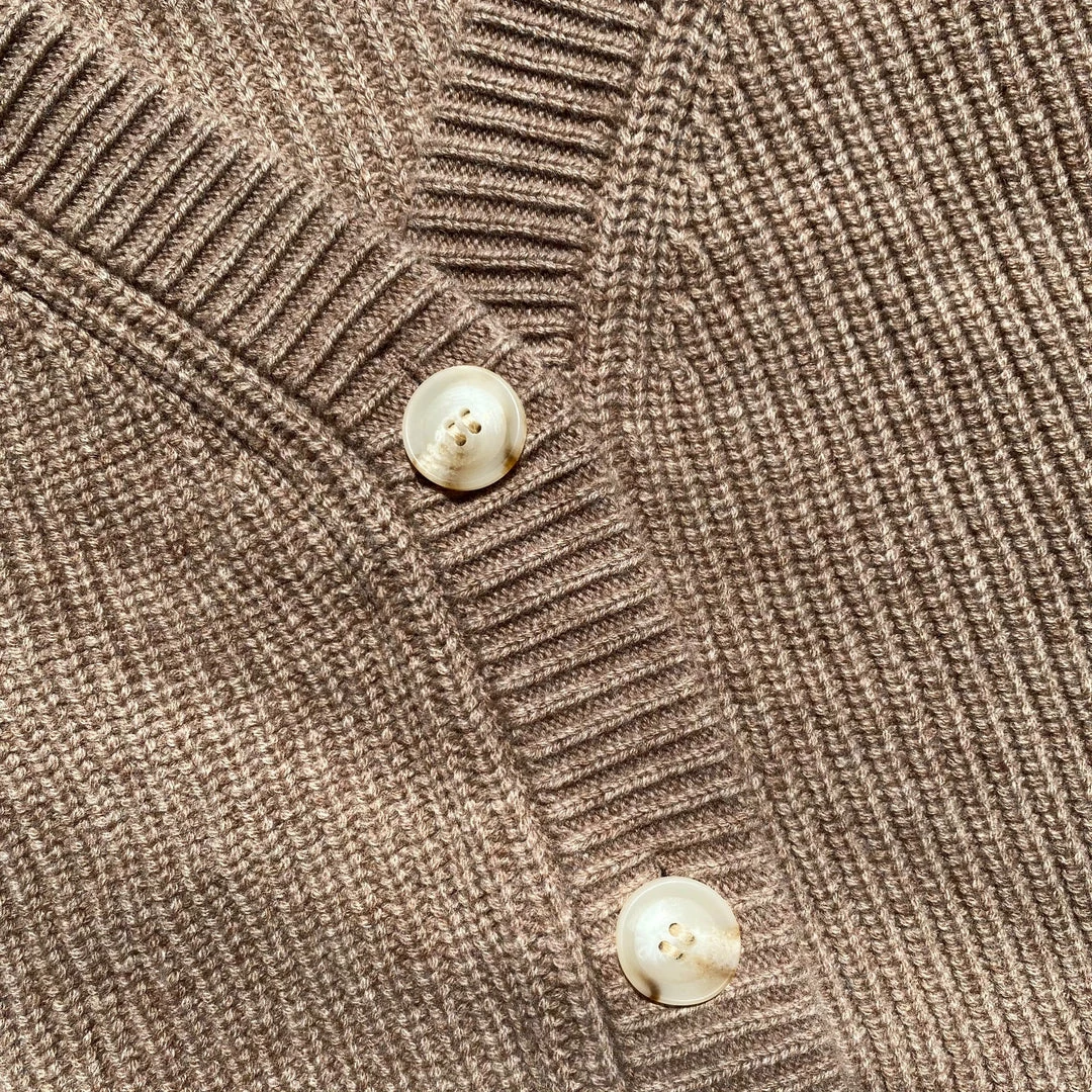 This cashmere blend cardigan is designed with an off shoulder neckline. It is finished with tortoiseshell resin buttons. Check the Size Guide to find your perfect fit.