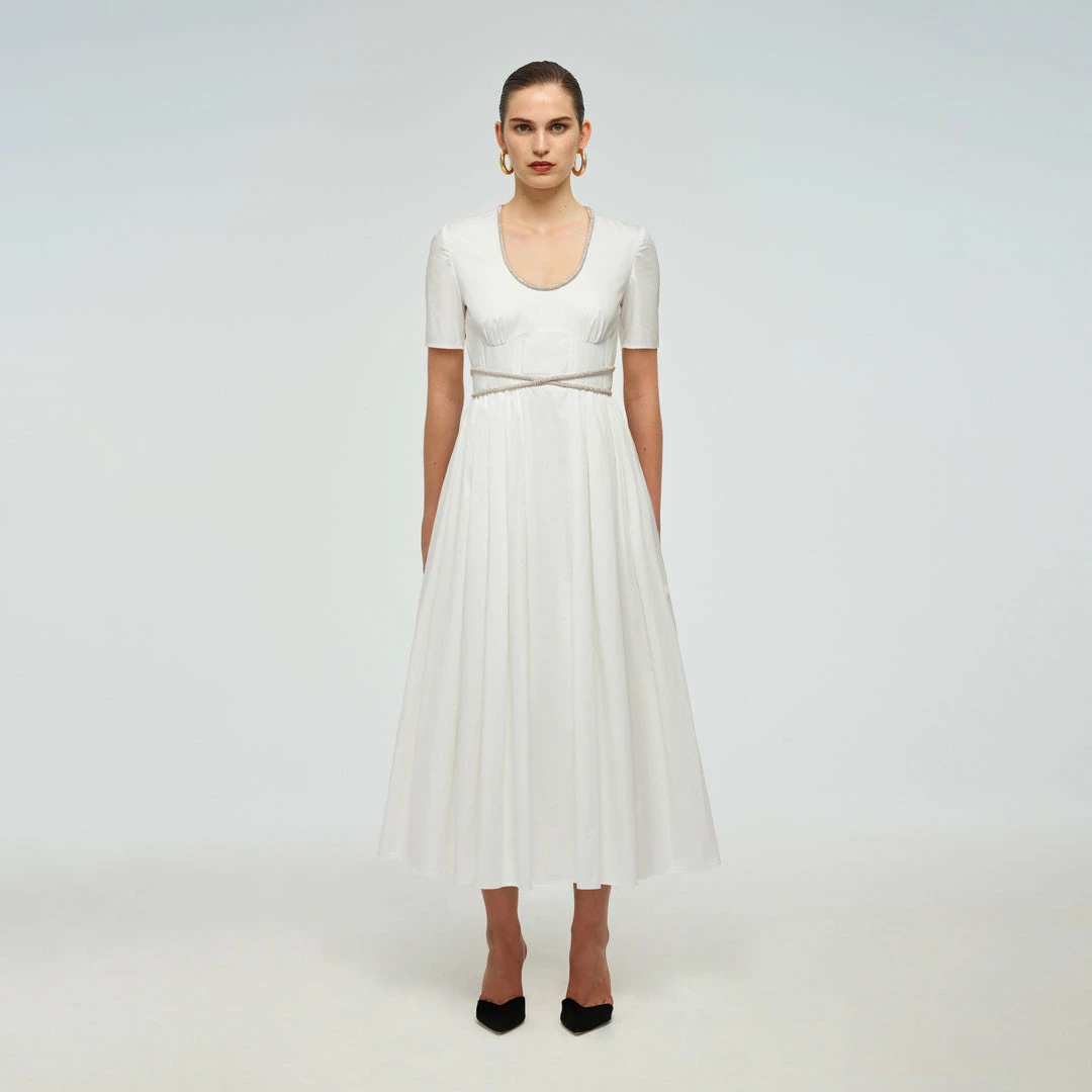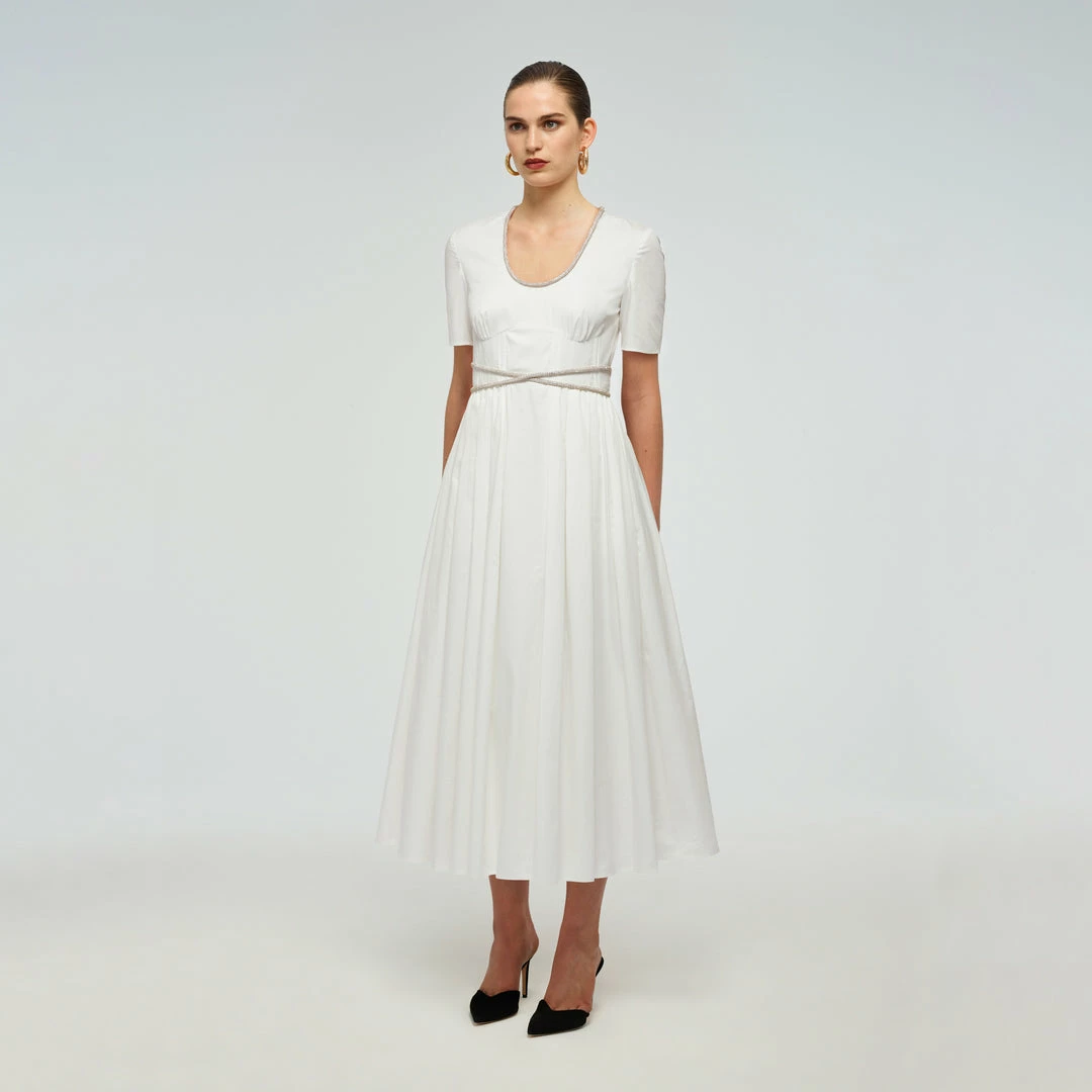 Self-portrait Cotton Diamante Trim Dress READY TO WEAR