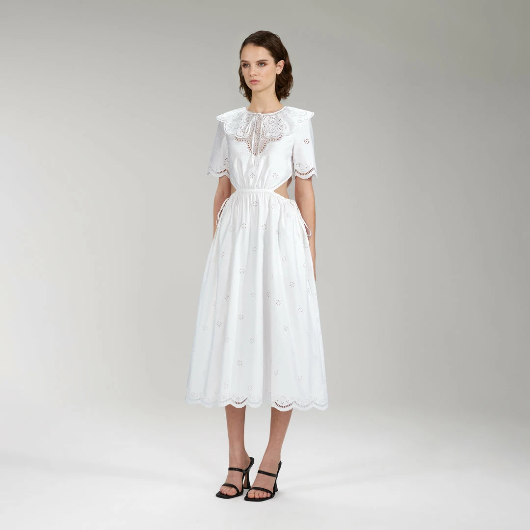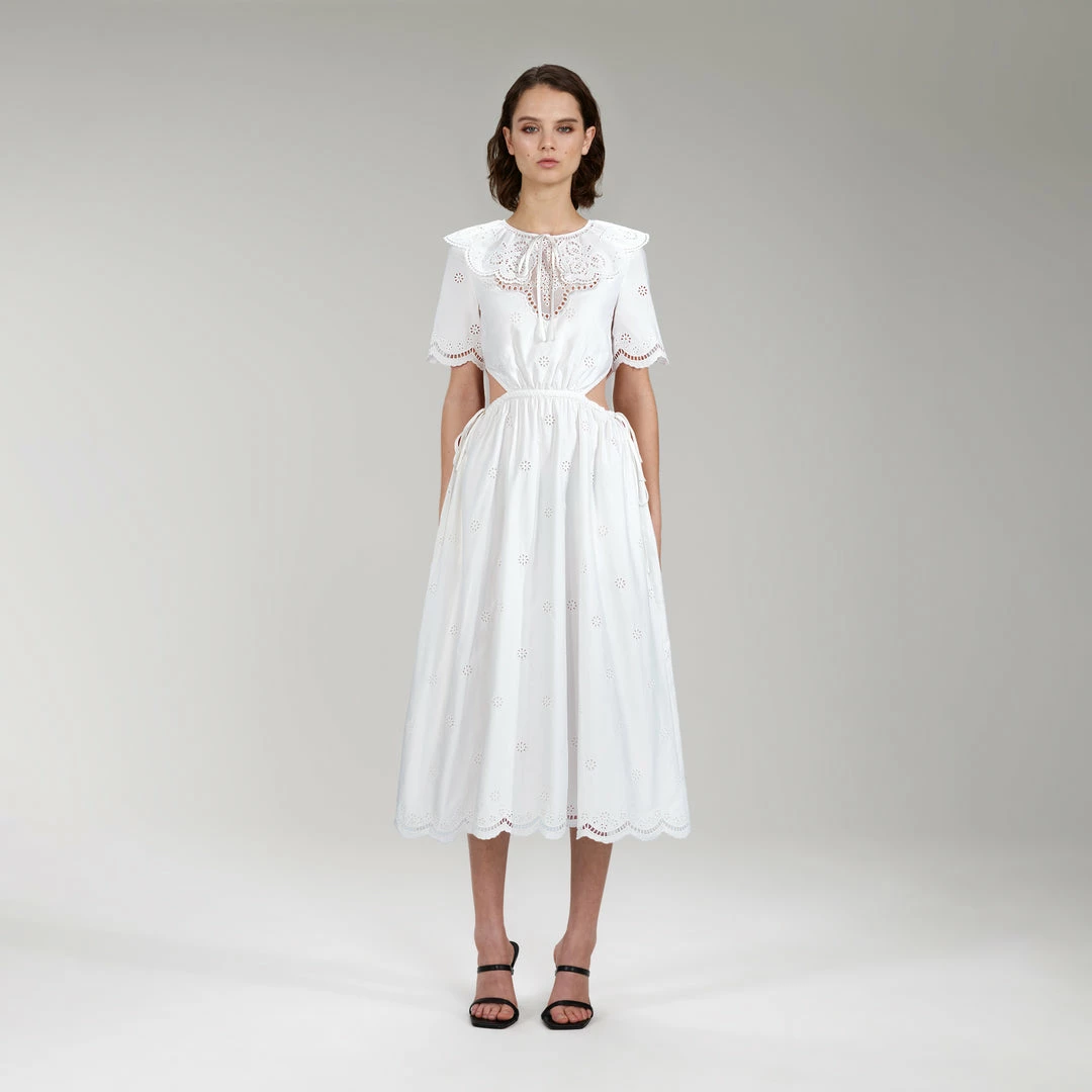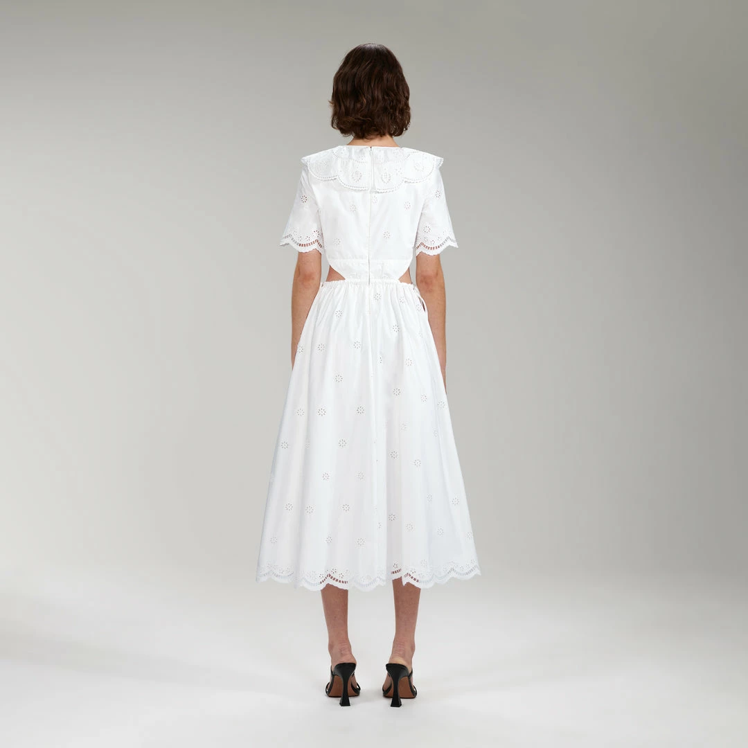 Self-portrait Daisy Cotton Broderie Anglaise Cut Out Midi Dress