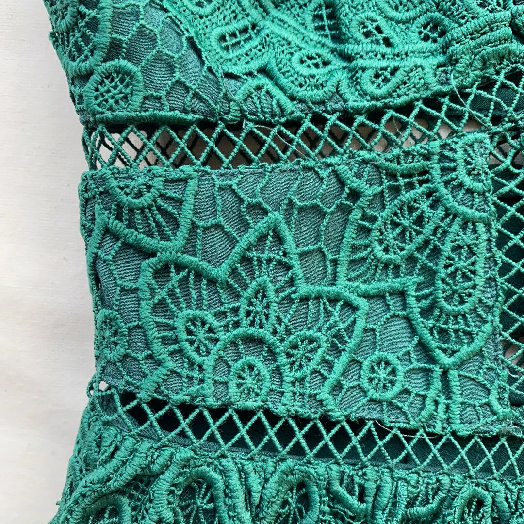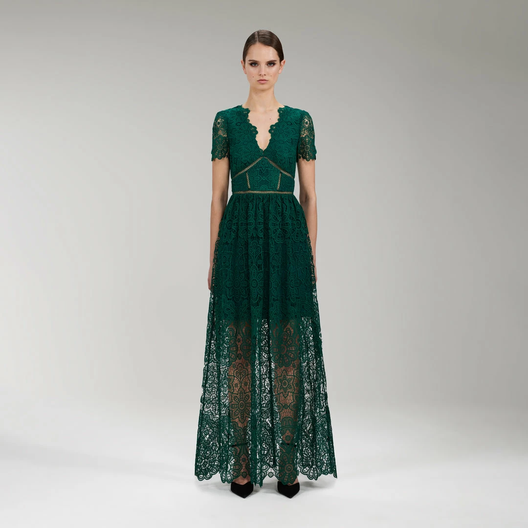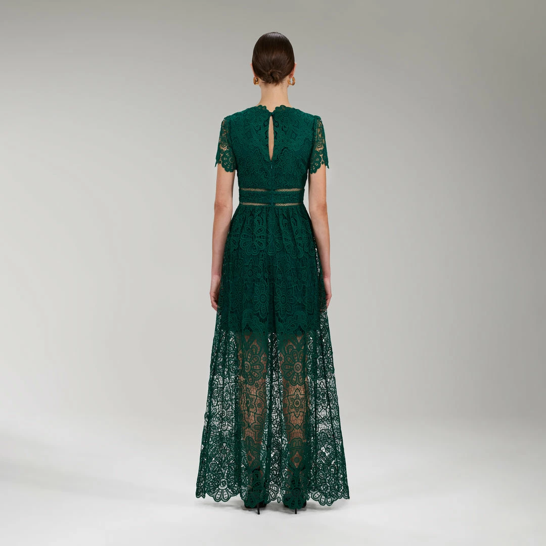 Self-portrait Dark Green Floral Guipure Maxi Dress