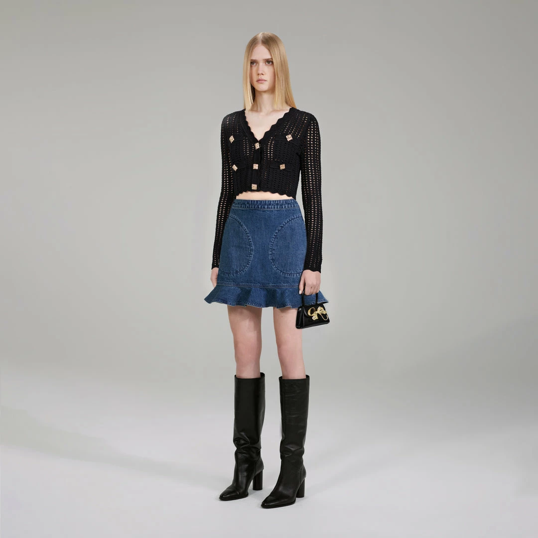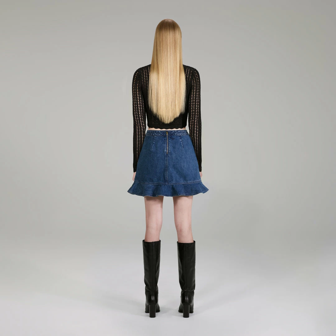 Self-portrait Dark Wash Denim Ruffle Skirt NEW ARRIVALS