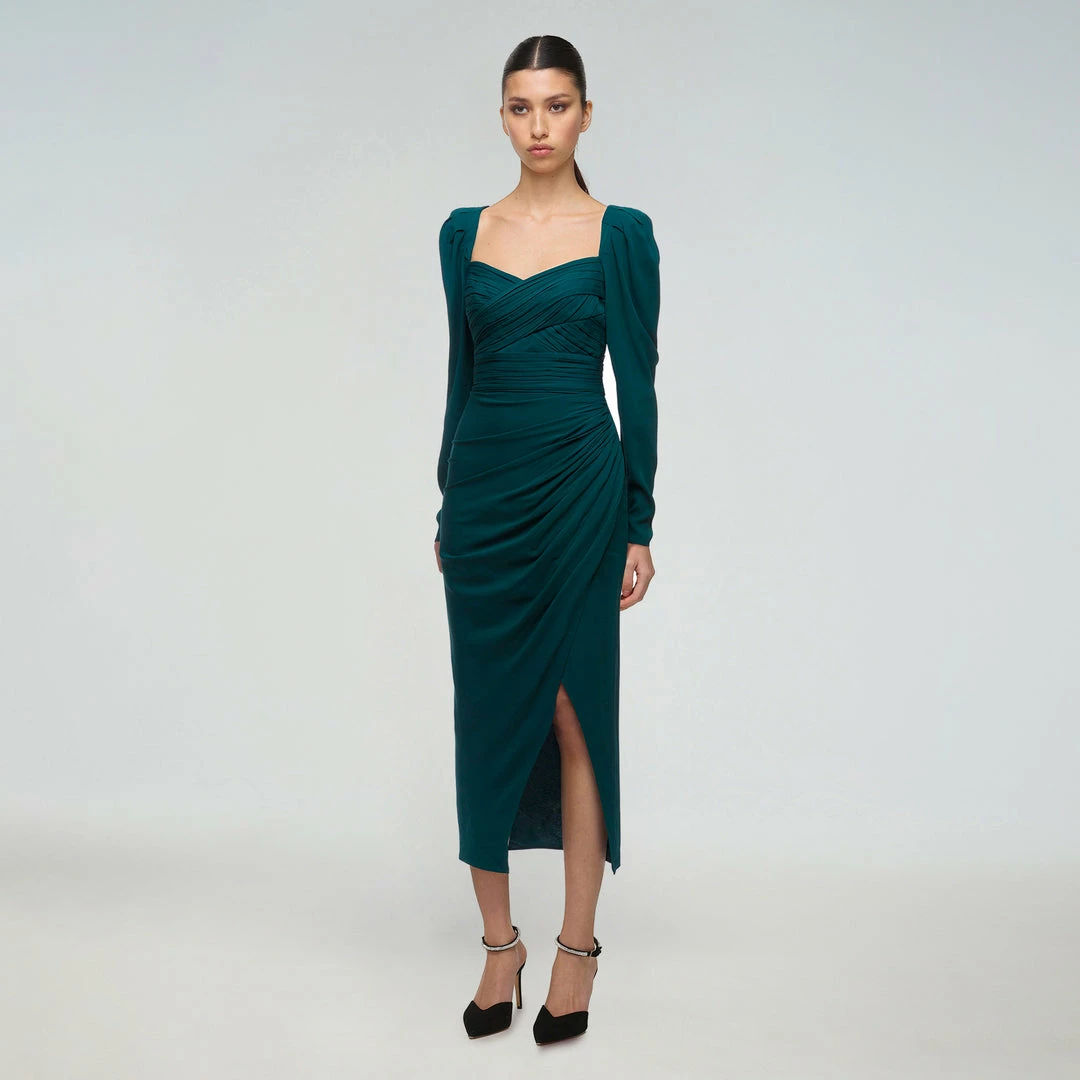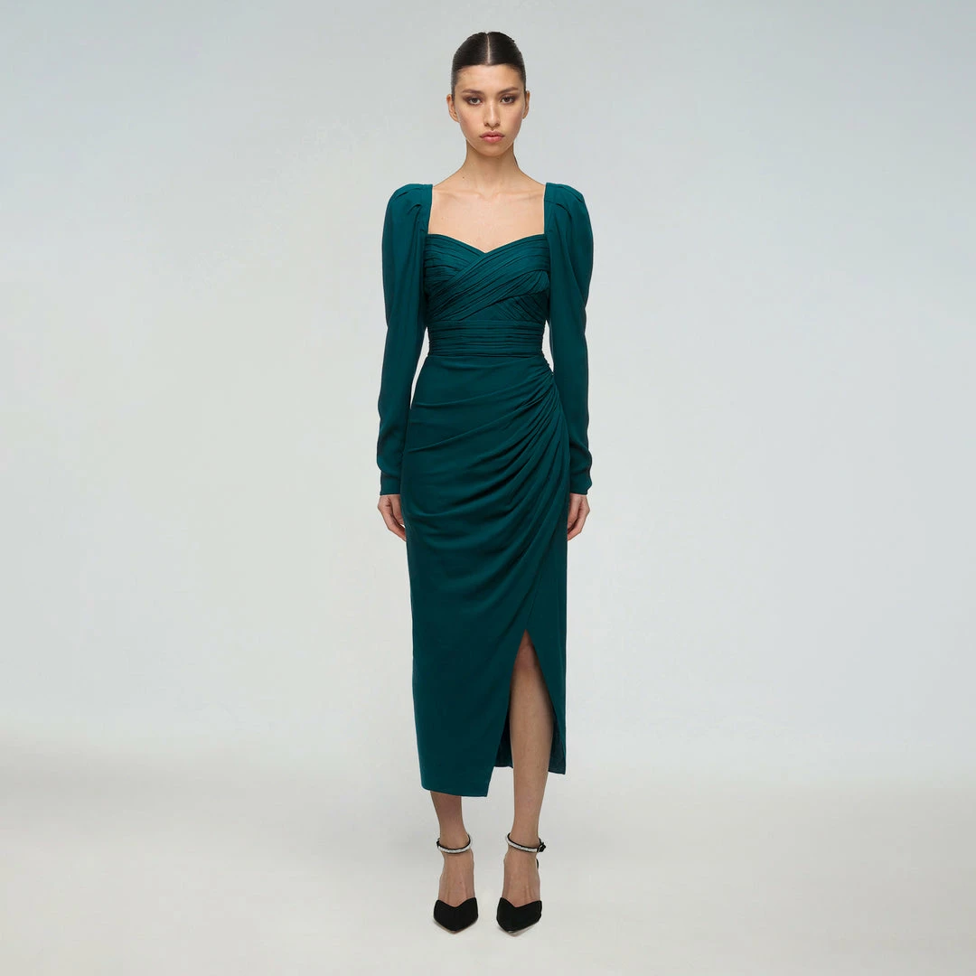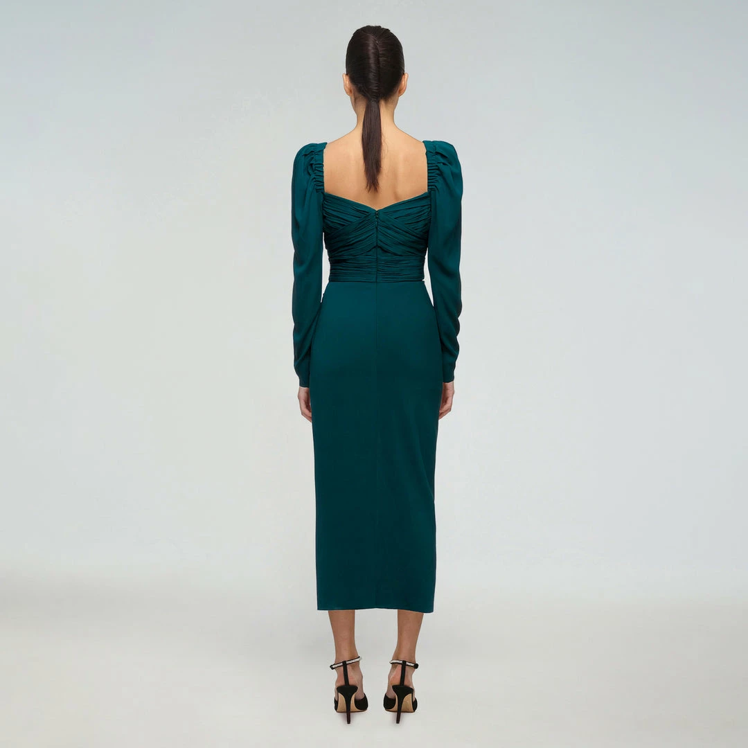 Self-portrait Deep Teal Iris Midi Dress READY TO WEAR