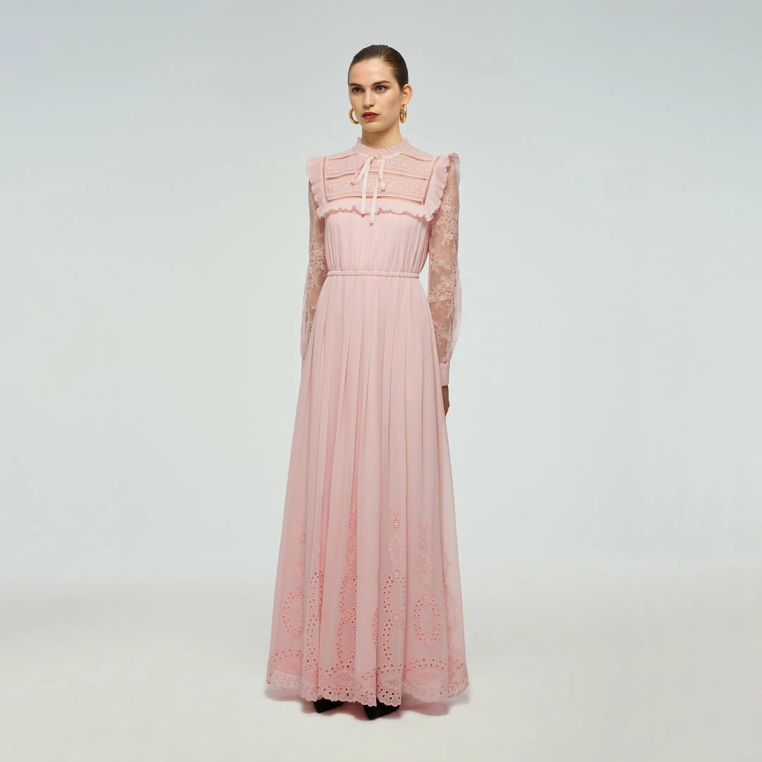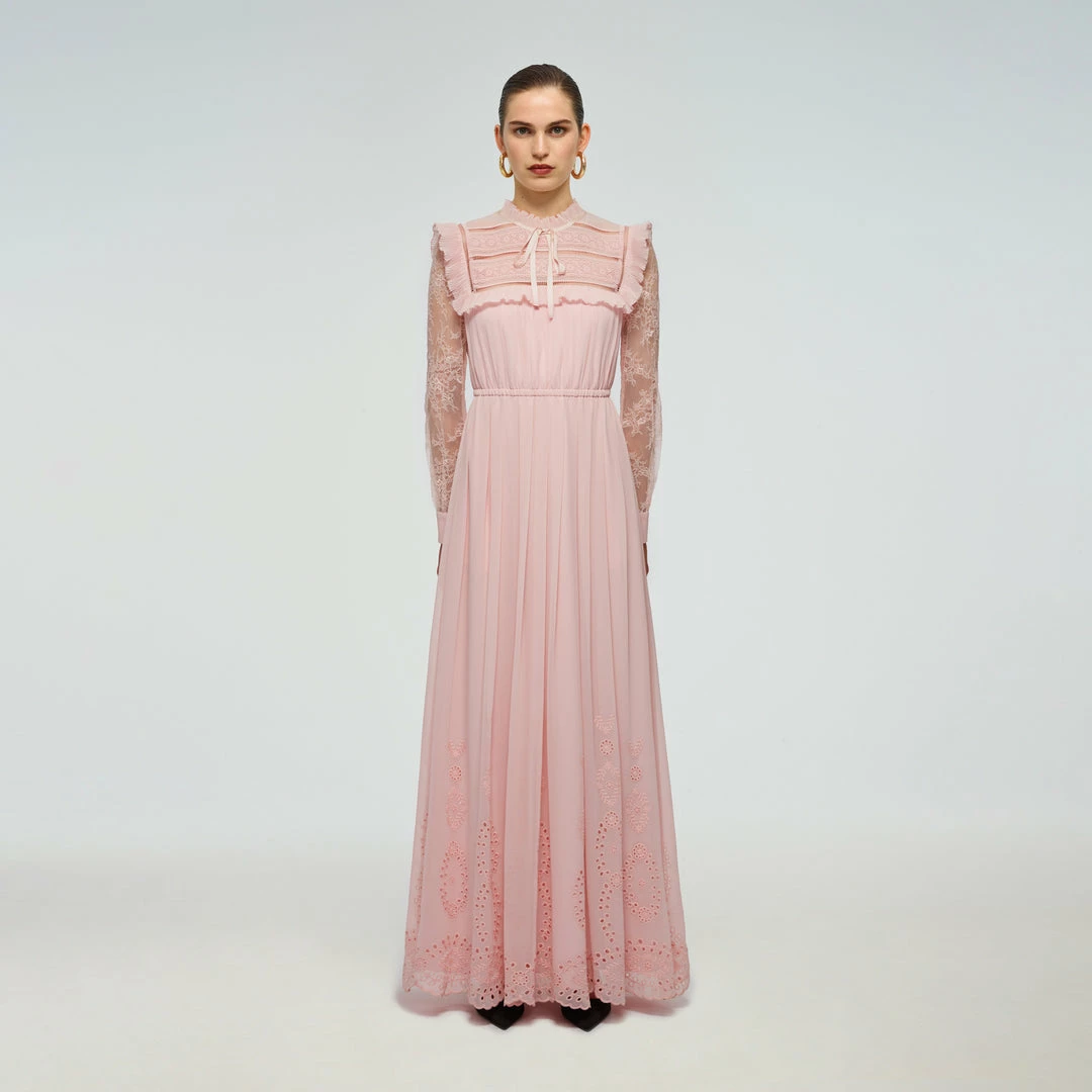 Self-portrait Dresses Pink Broderie Chiffon Maxi Dress