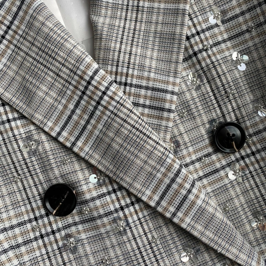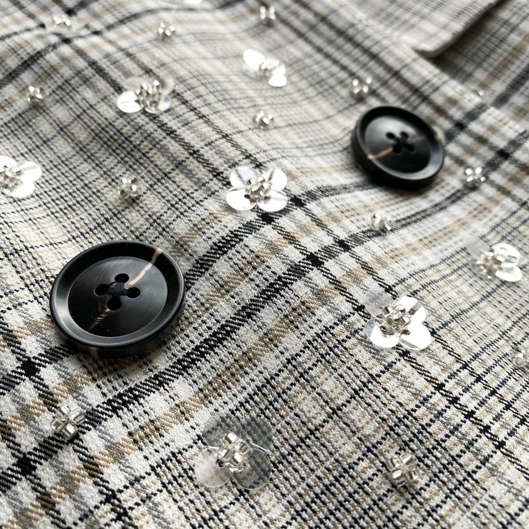 This double breasted mini dress is cut from embellished check fabric. It features a low v neckline and functional pockets. It is designed with shaping through the waist to give a nipped in silhouette. This is lined. Check the Size Guide to find your perfect fit.