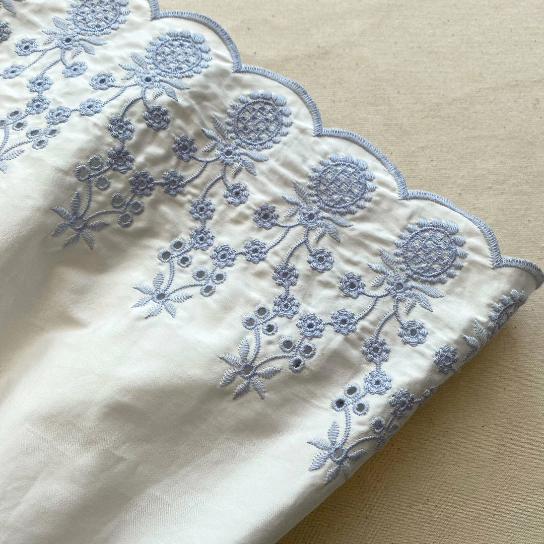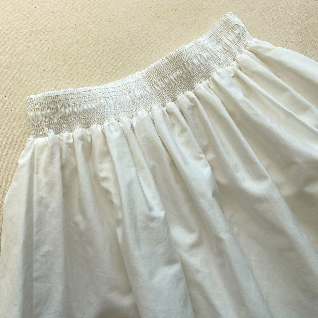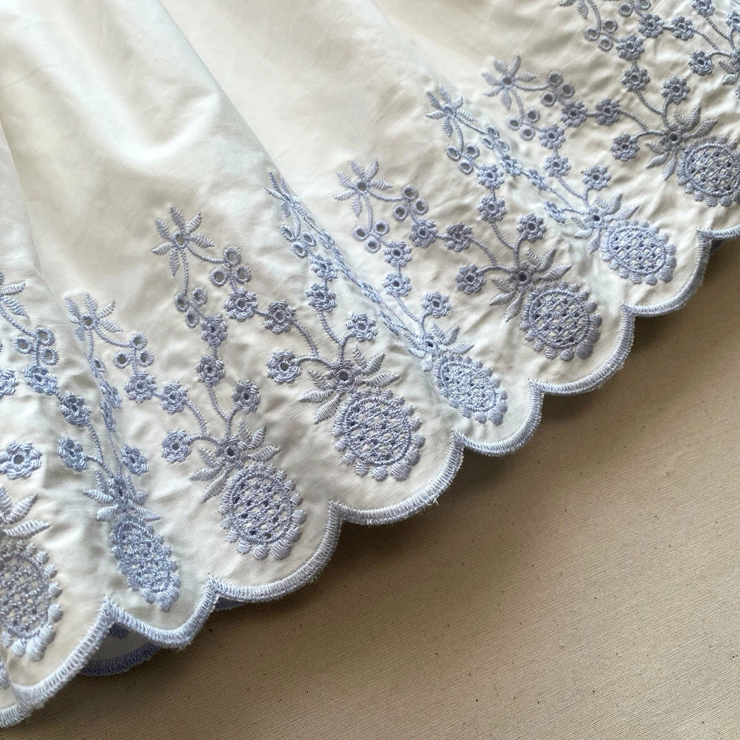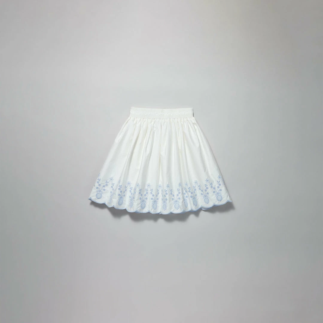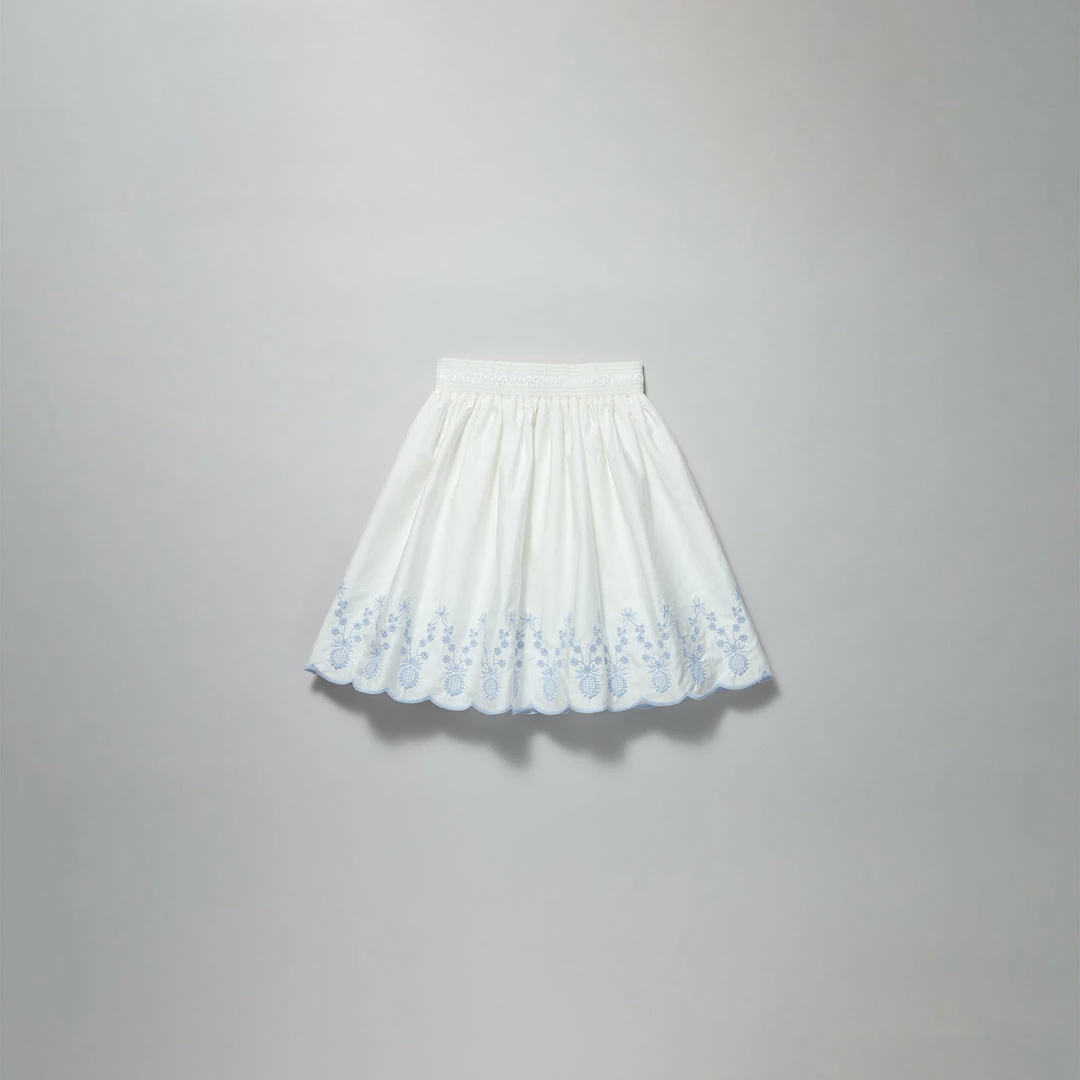 This kids mini skirt is cut from white organic cotton broderie anglaise. The shirred waistband falls to a full silhouette crafted with delicate embroidery at the hem. Check the Size Guide to find your perfect fit.