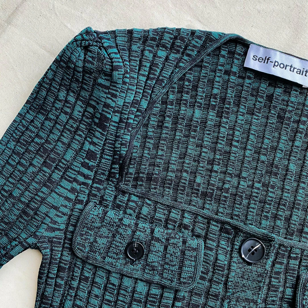 Self-portrait Green And Black Ribbed Knit Dress