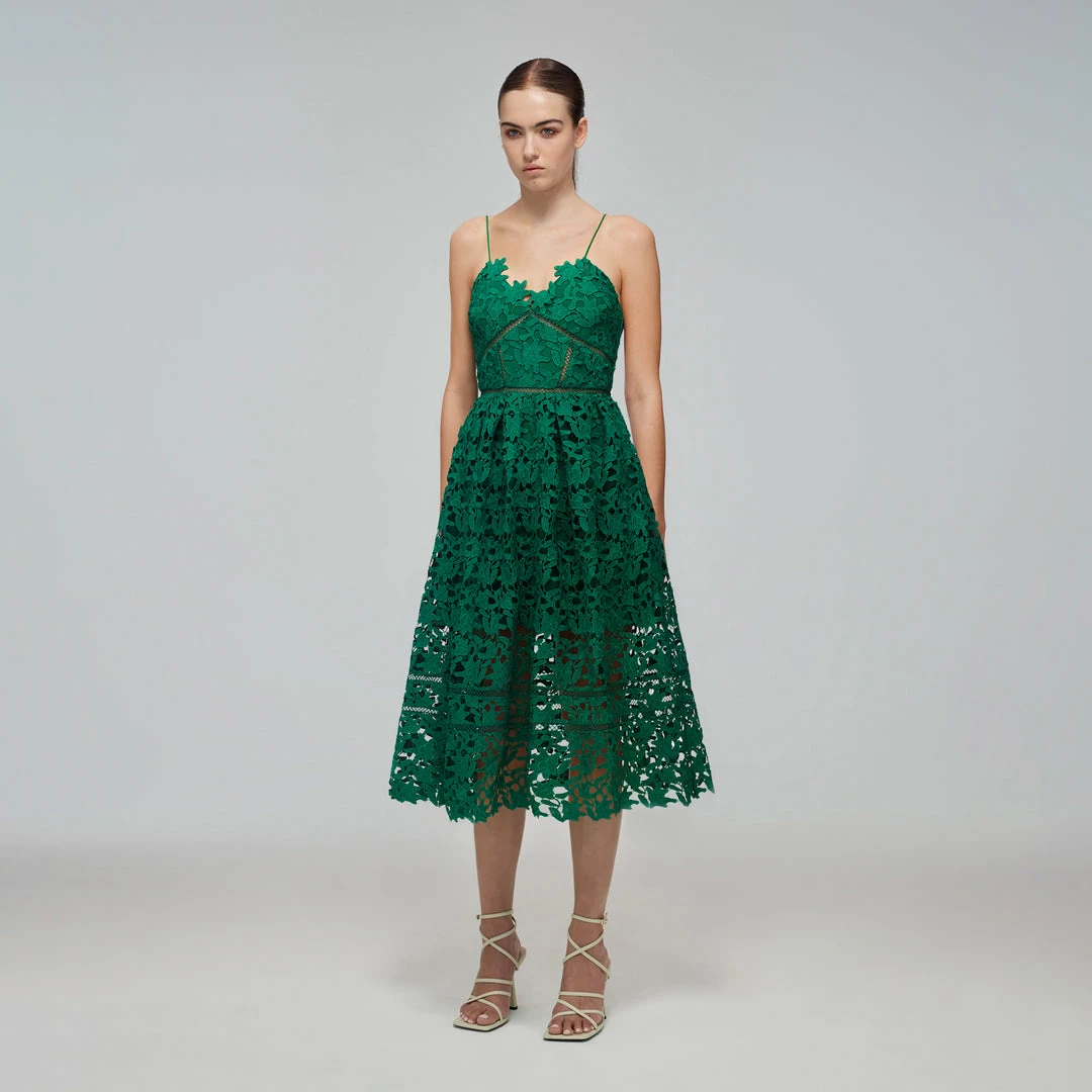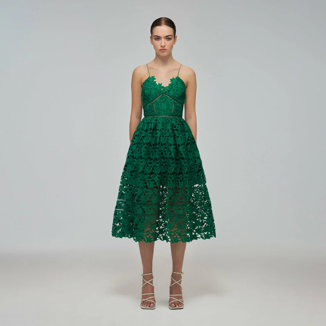 Self-portrait Green Azaelea Midi Dress READY TO WEAR