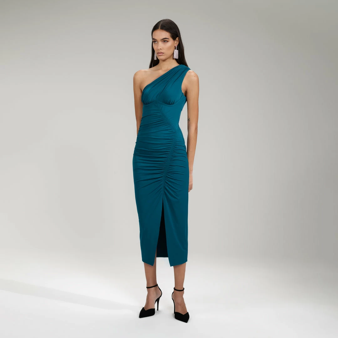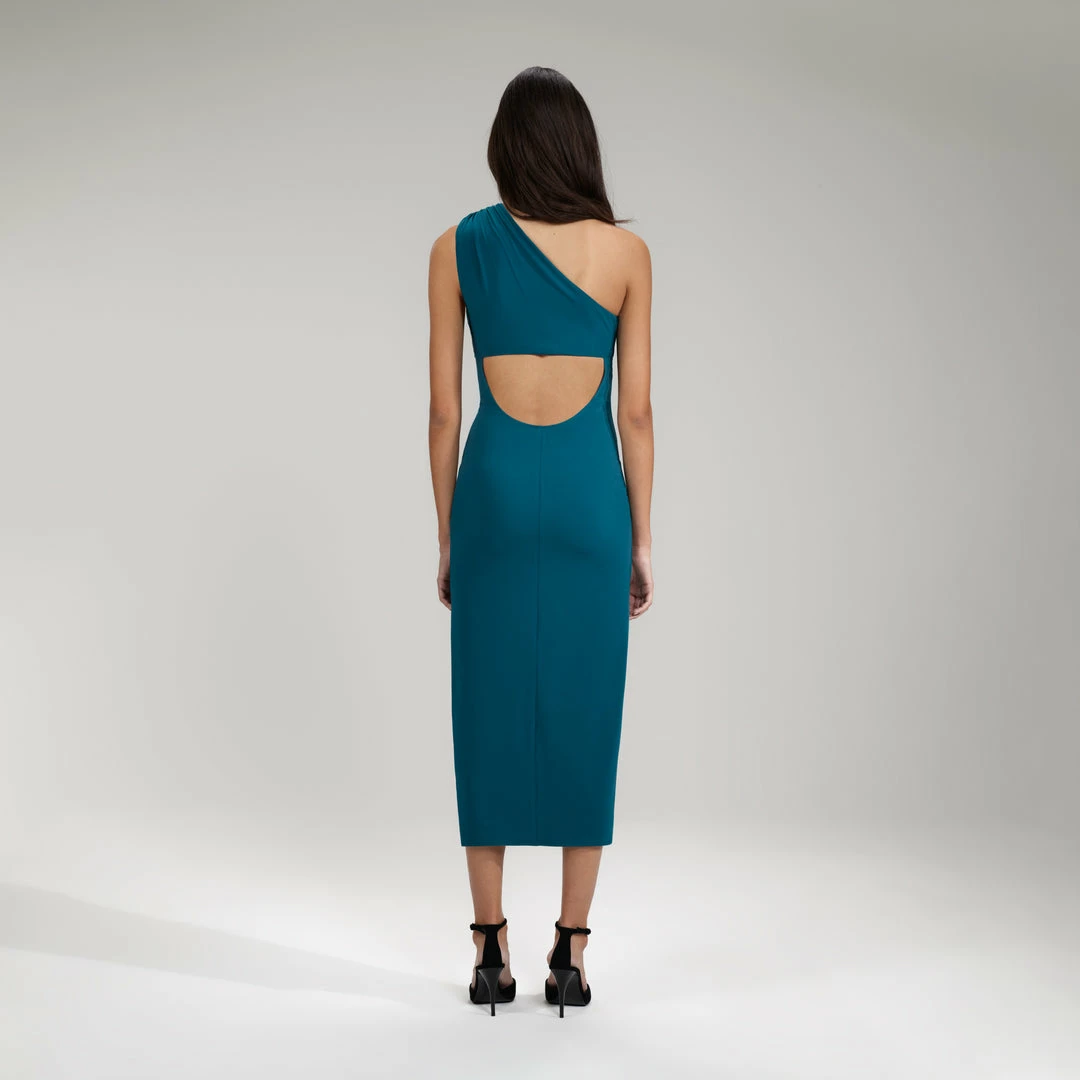 Self-portrait Green Jersey One Shoulder Ruched Midi Dress READY TO WEAR