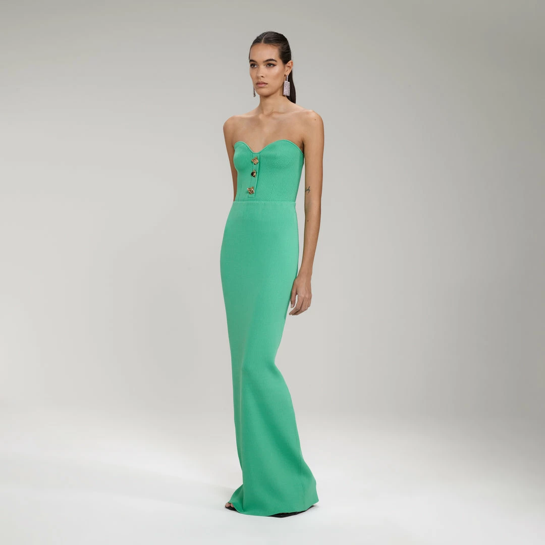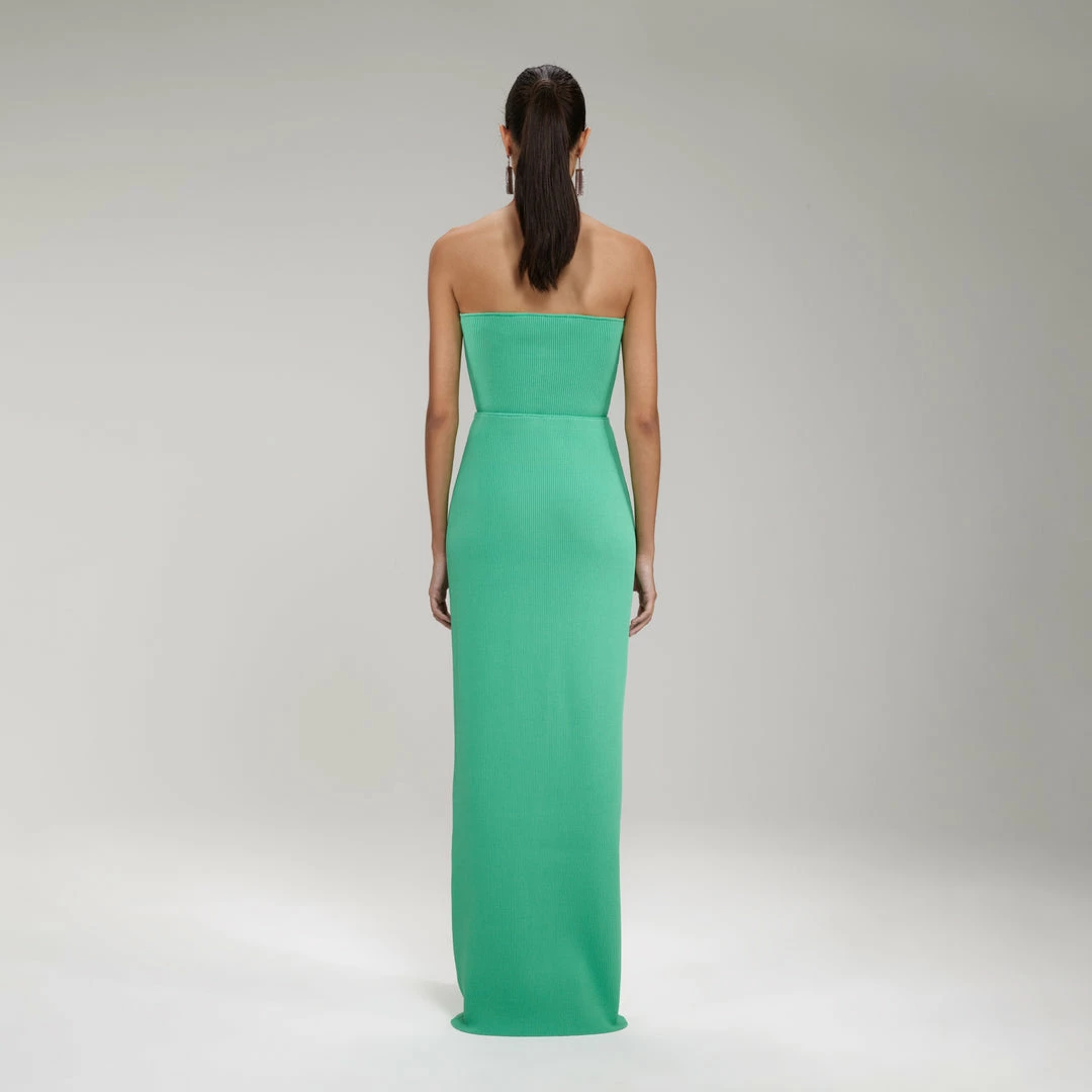 Self-portrait Green Strapless Ribbed Knit Top NEW ARRIVALS