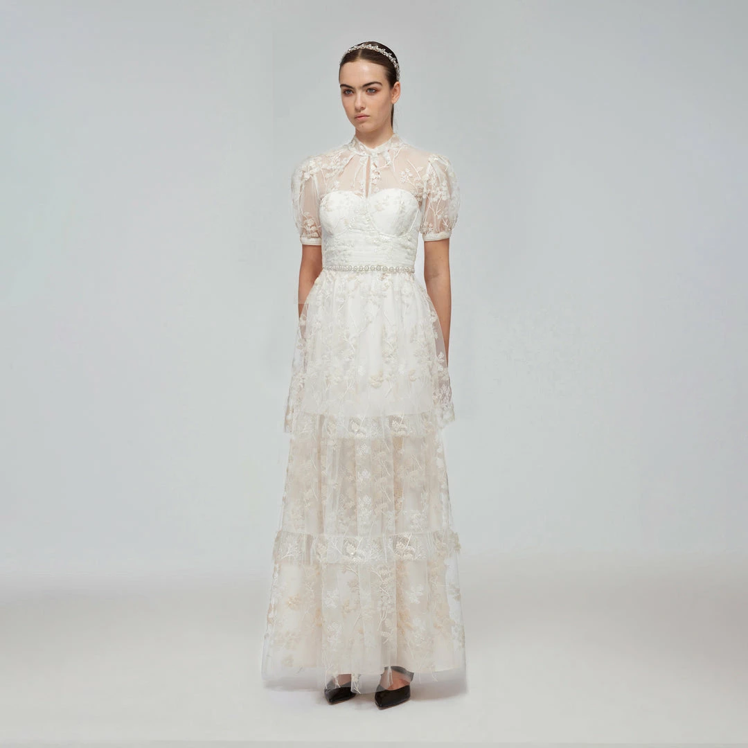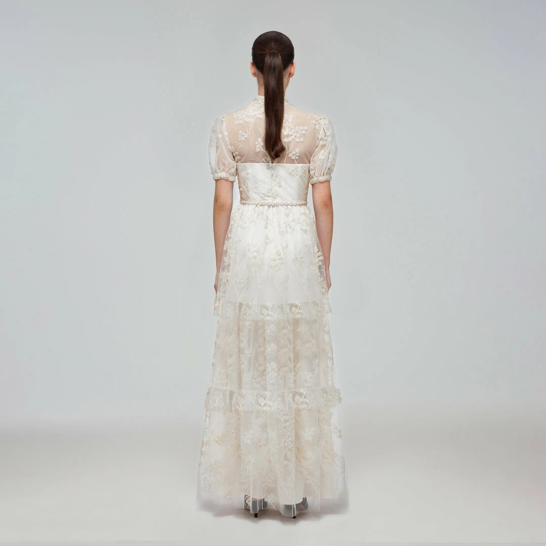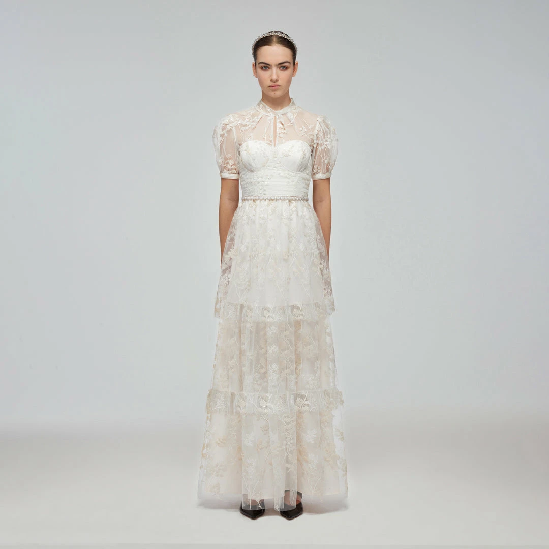 Self-portrait Ivory Blossom Sequin Tiered Maxi Dress READY TO WEAR