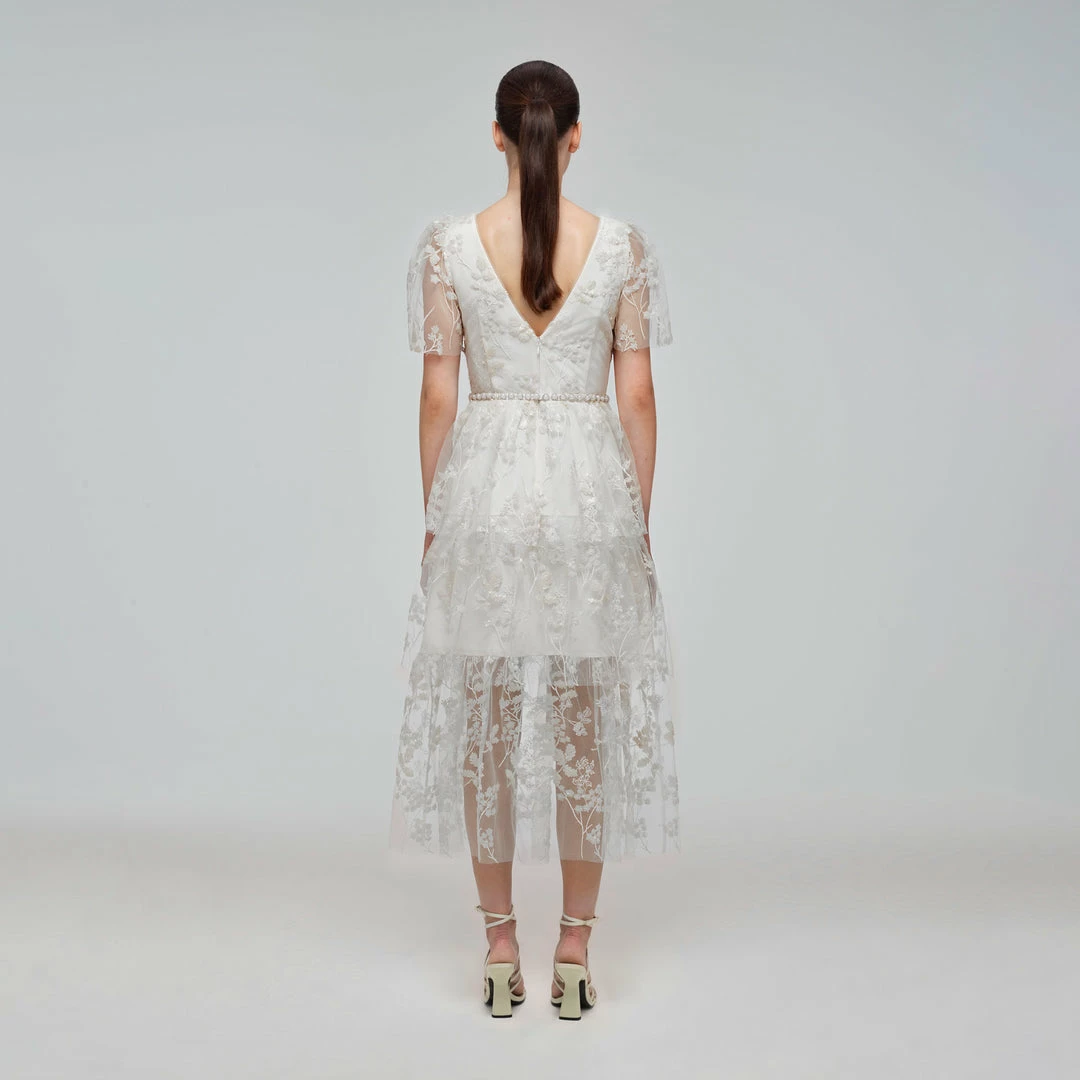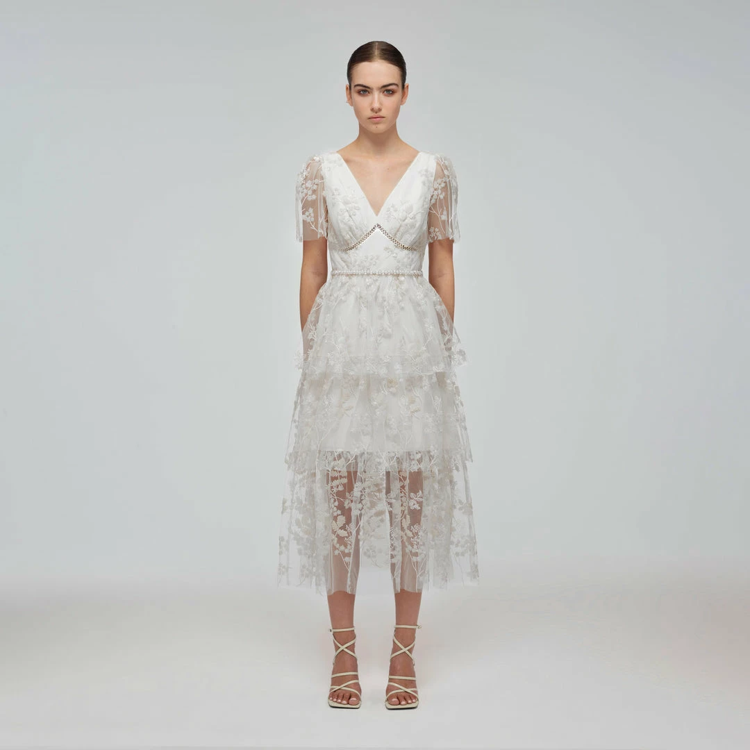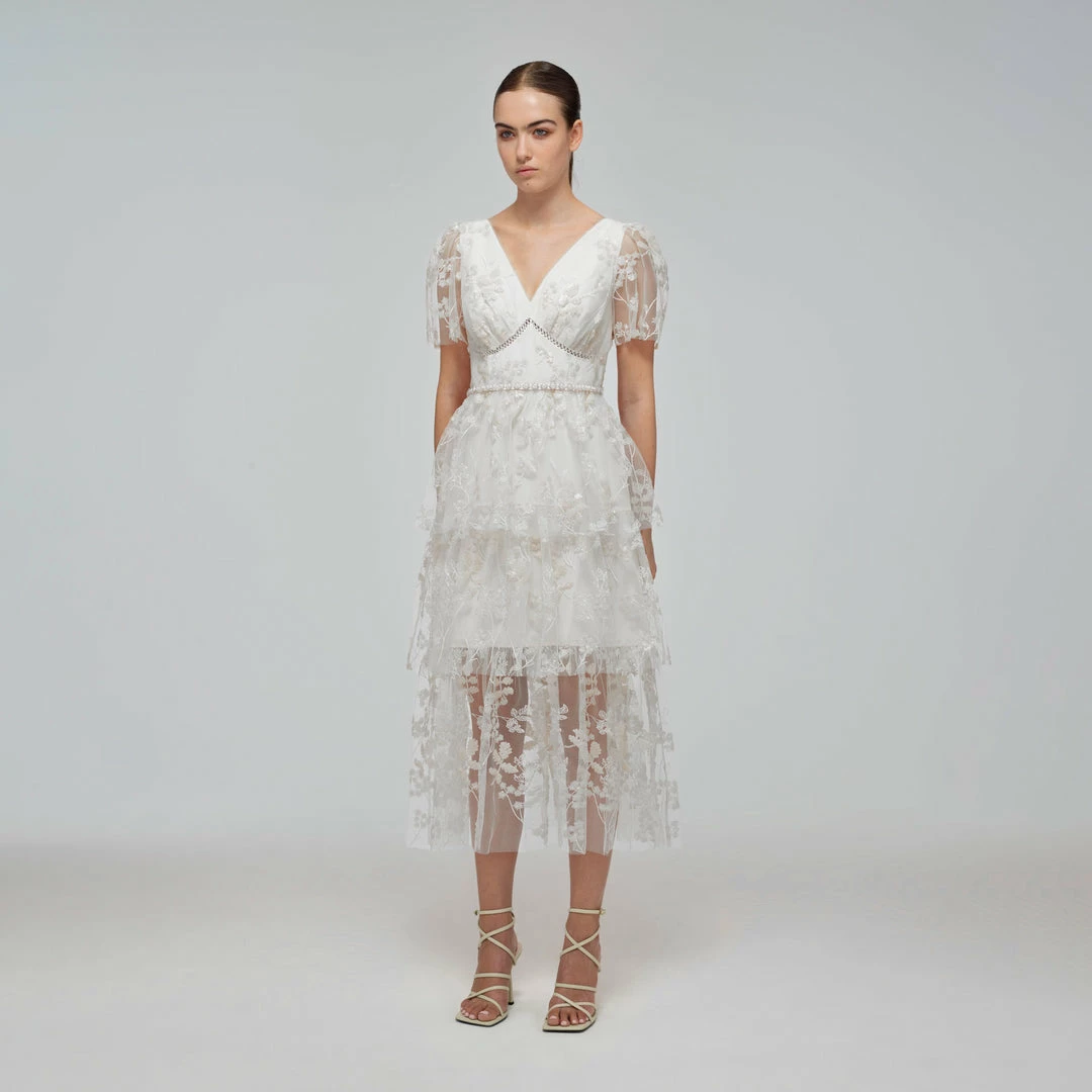 Self-portrait Ivory Blossom Sequin Two Tier Midi Dress