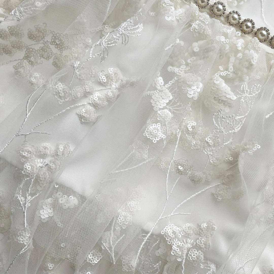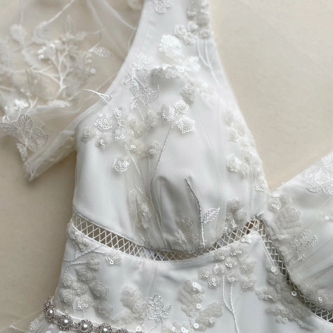 This midi dress is cut from ivory blossom sequin. It is designed with a flattering neckline and angel sleeves. It is fitted at the waist with a pearl and diamanté trim and falls to a pleated tiered midi skirt. Check the Size Guide to find your perfect fit.