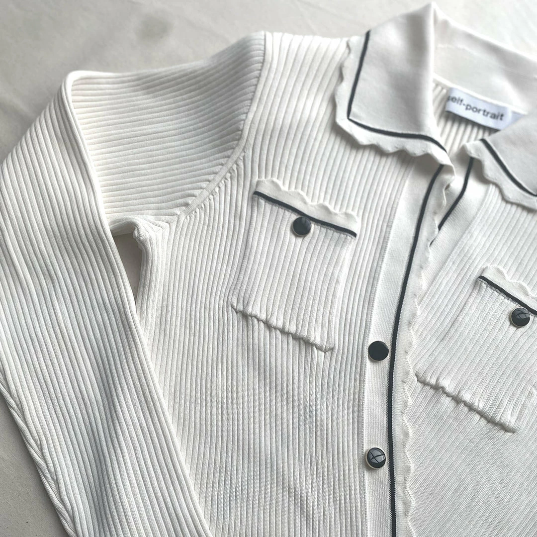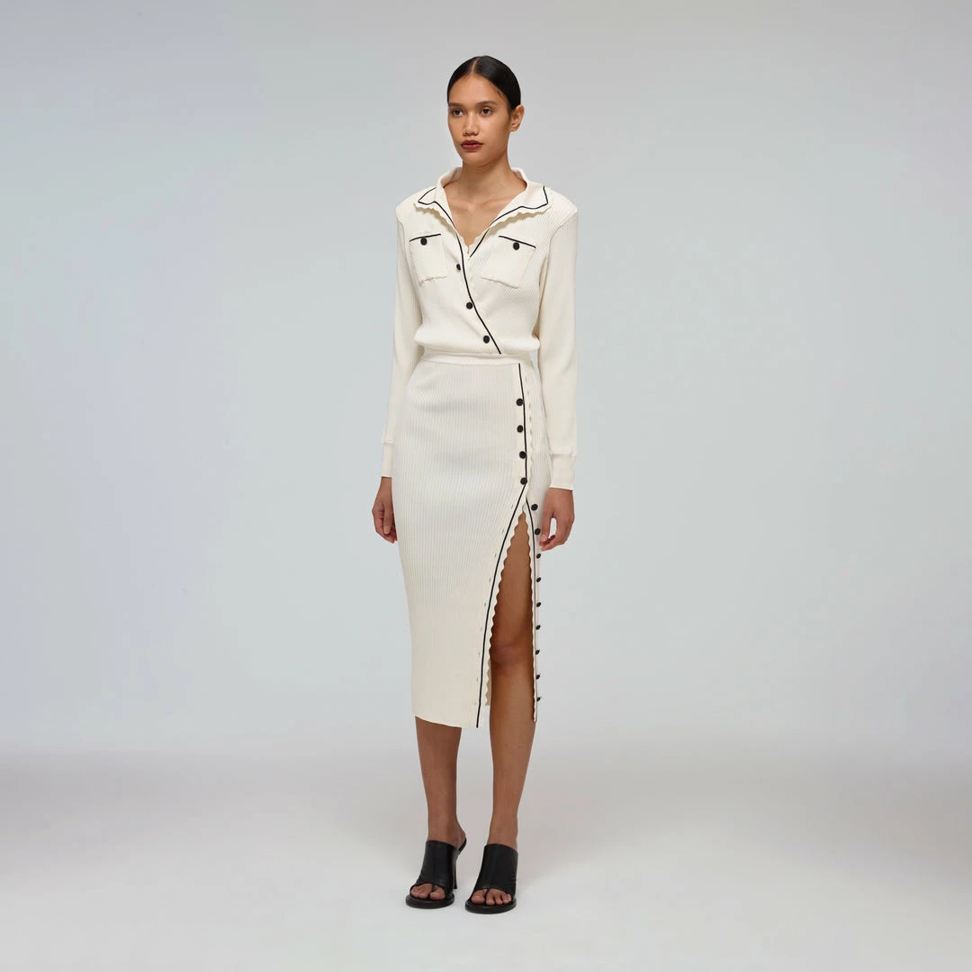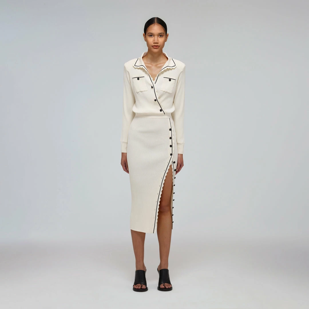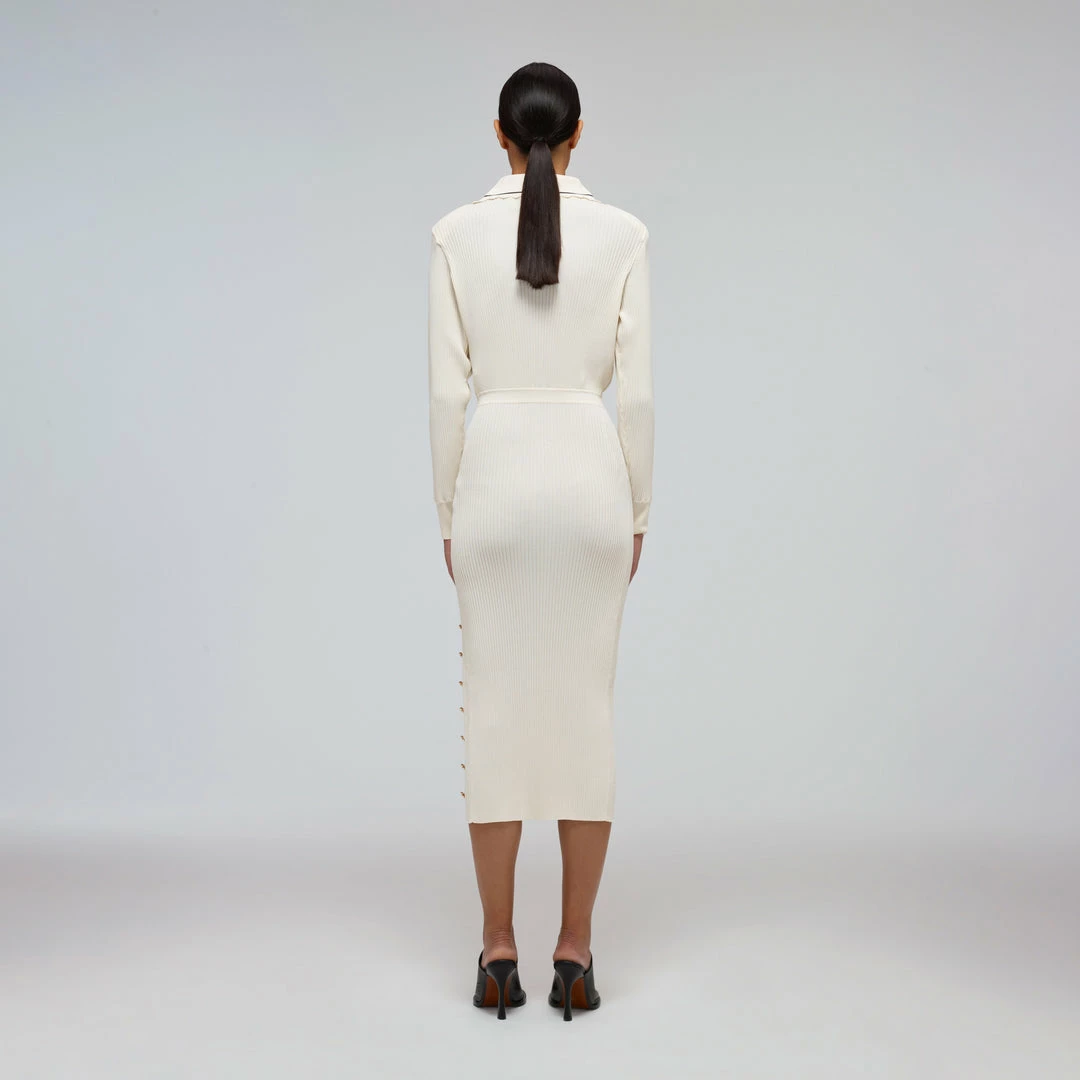 Self-portrait Ivory Contrast Stitch Ribbed Knit Dress READY TO WEAR