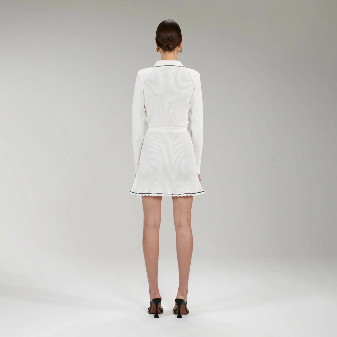 Self-portrait Ivory Contrast Stitch Ribbed Knit Mini Dress