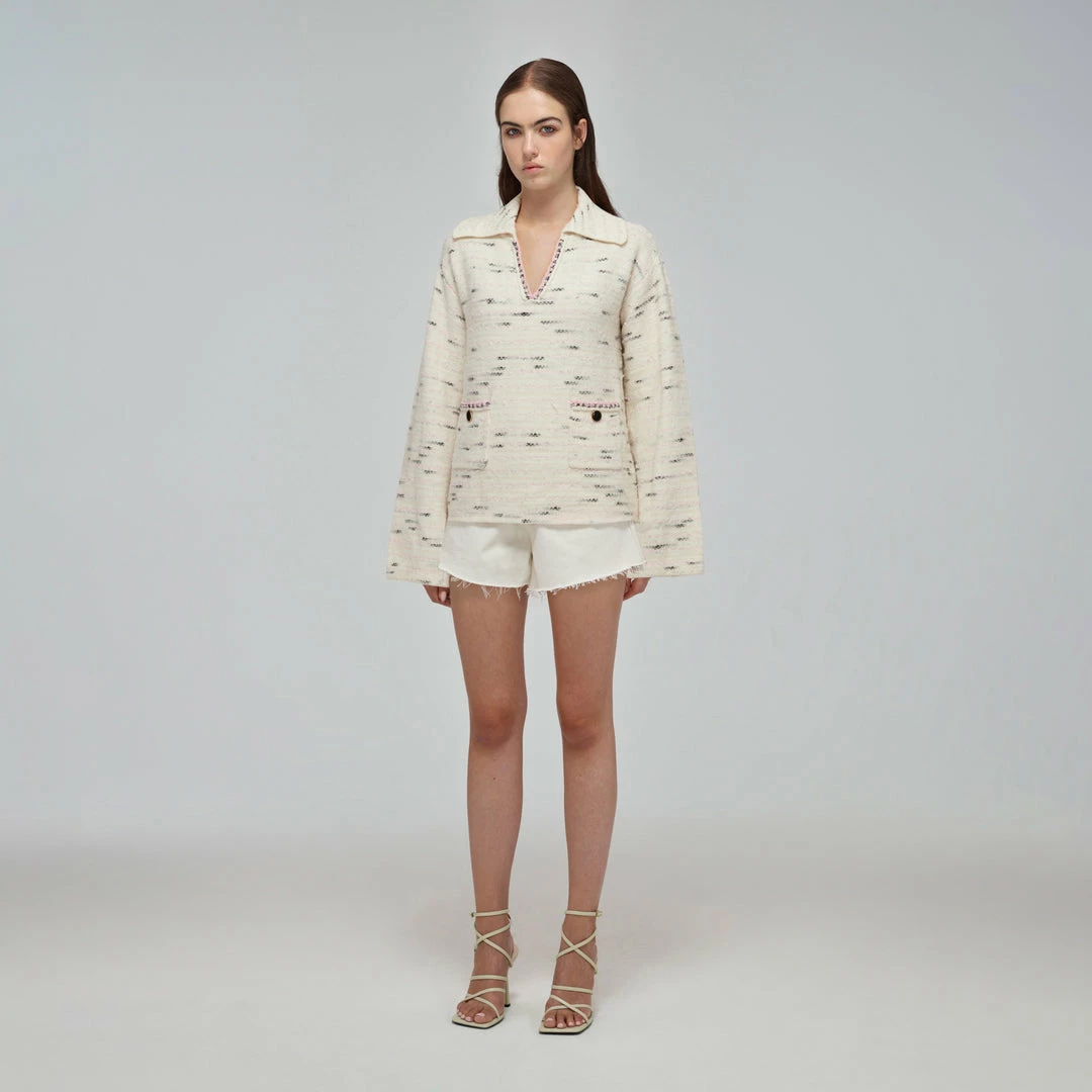 Self-portrait Ivory Contrast Yarn Knit Jumper READY TO WEAR