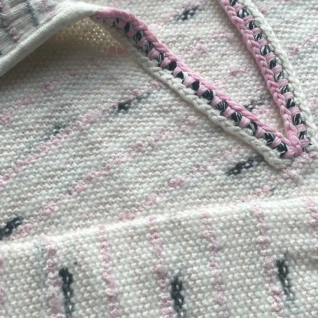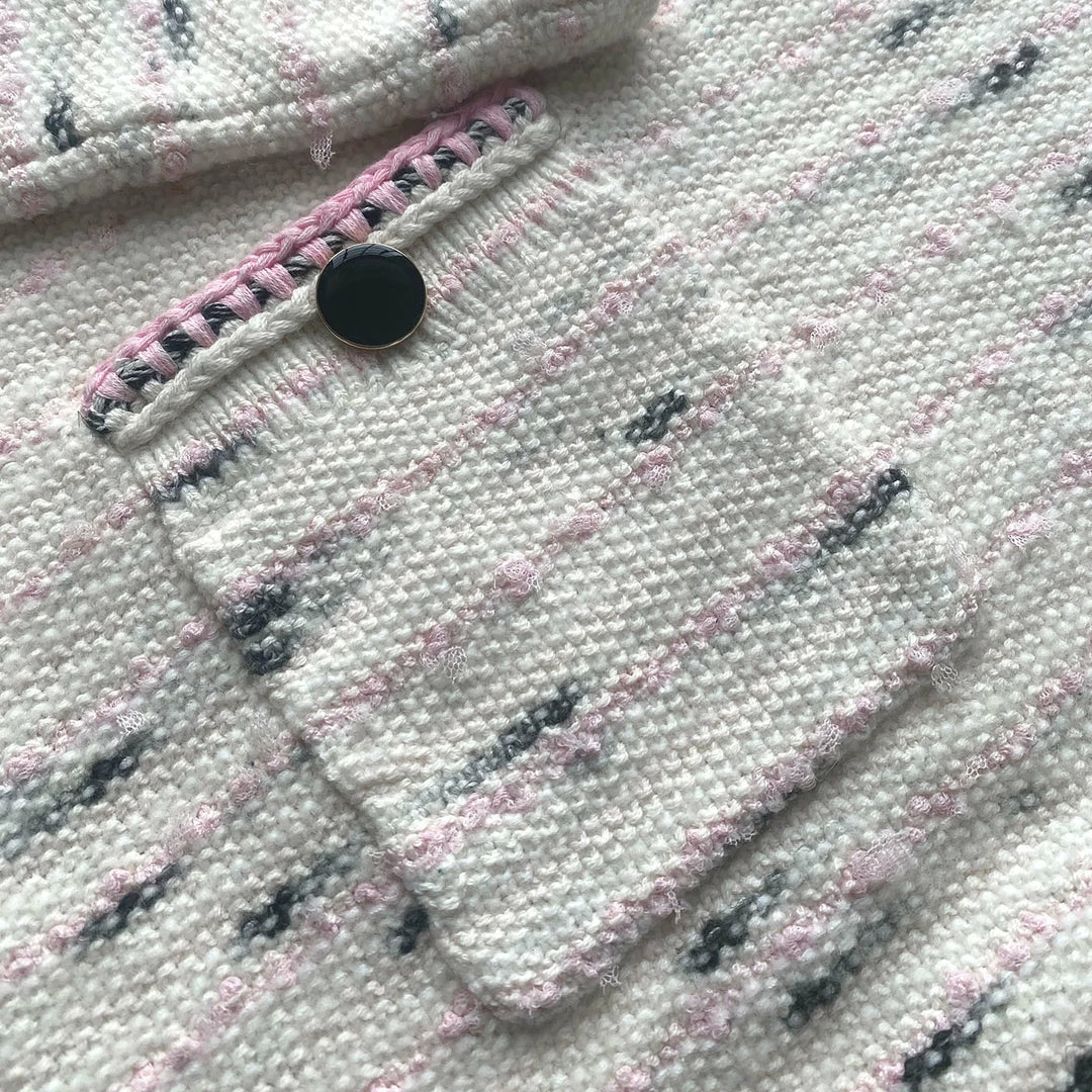 This cream contrast yarn knit jumper is designed with and collar and open neck finished with a braid trim. It features patch pockets with black enamel buttons. Check the Size Guide to find your perfect fit.