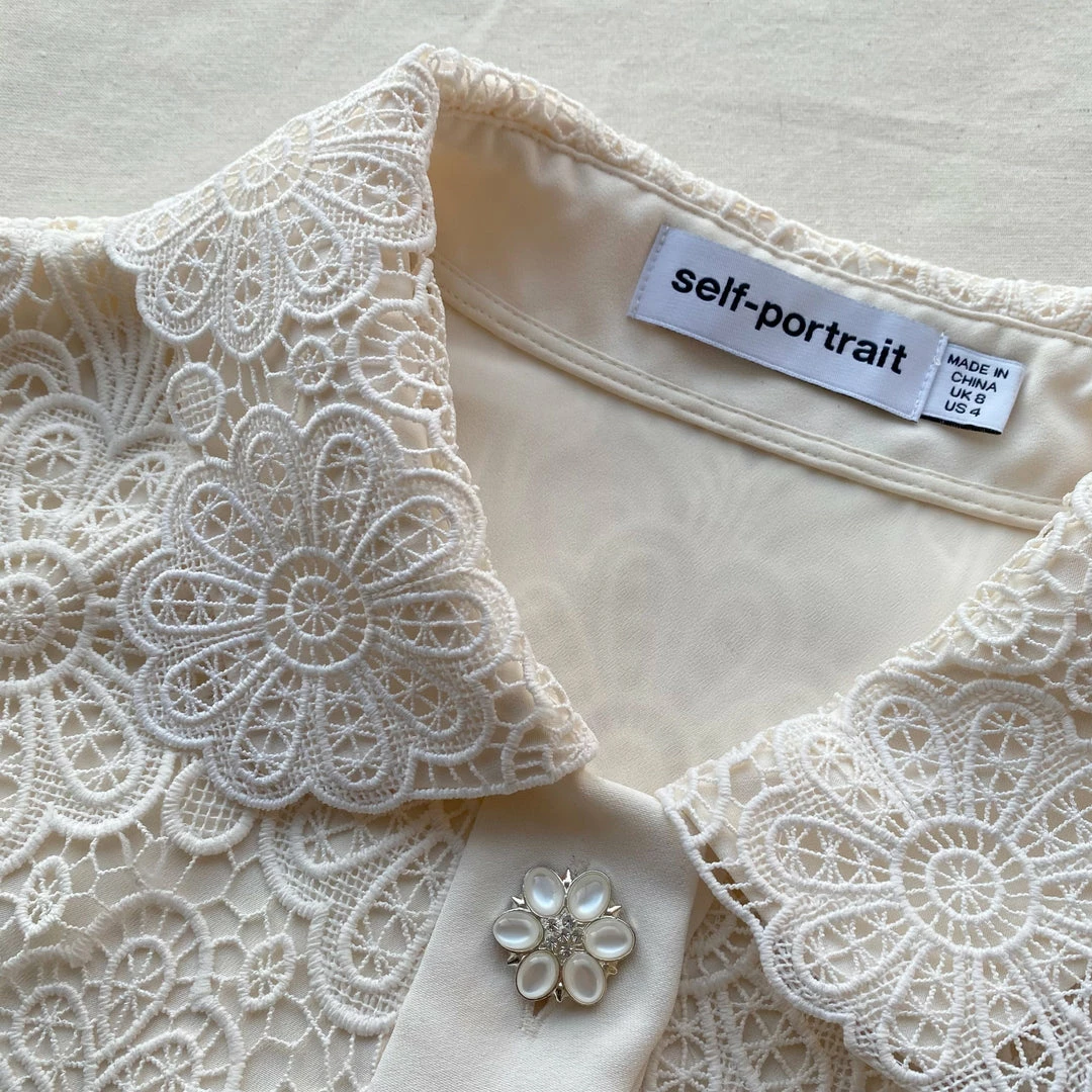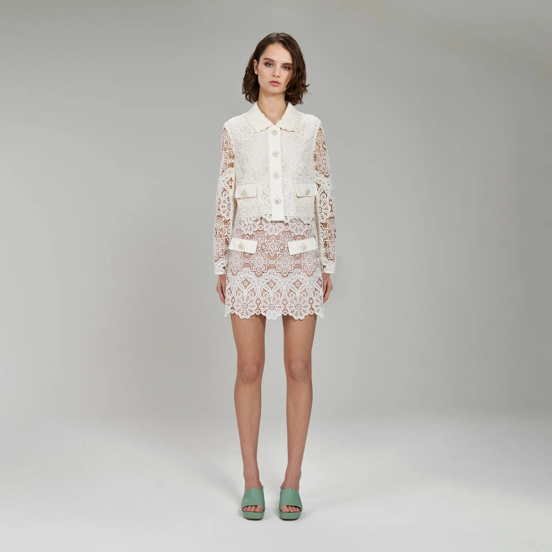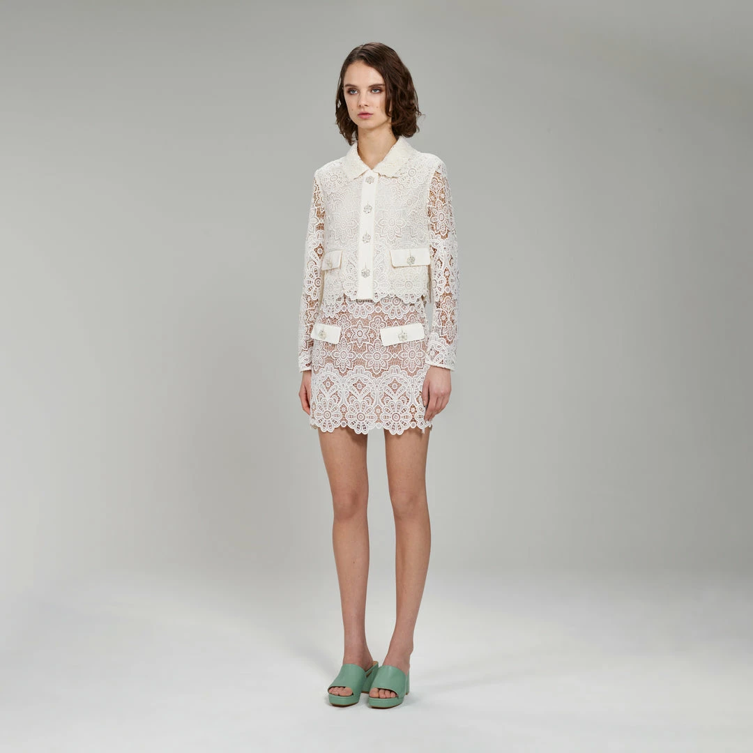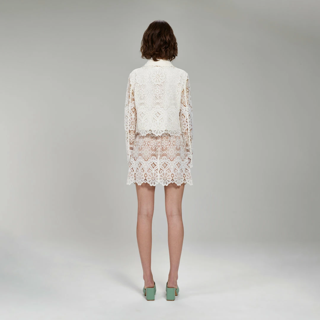 Self-portrait Ivory Floral Guipure Cropped Jacket READY TO WEAR