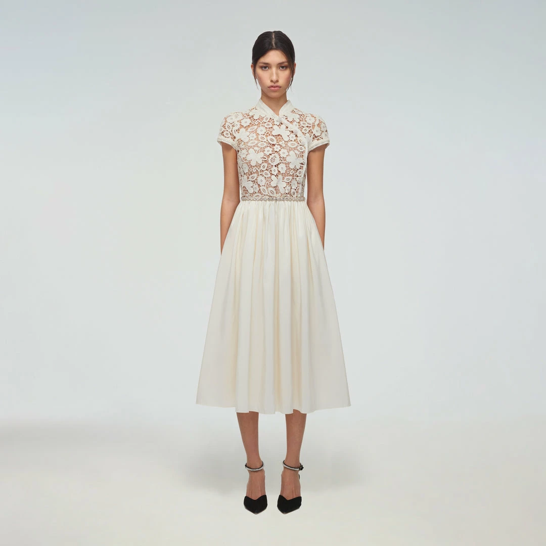 Self-portrait Ivory Guipure Lace And Taffeta Midi Dress