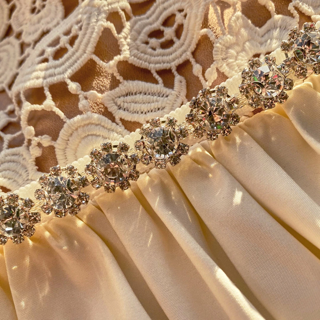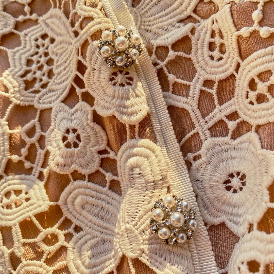This midi dress is cut from taffeta and floral guipure lace. Inspired by traditional Cheongsam dresses it features a mandarin collar and diamante buttons. It is fitted at the waist with a diamante trim and falls to a flared silhouette. Check the Size Guide to find your perfect fit.
