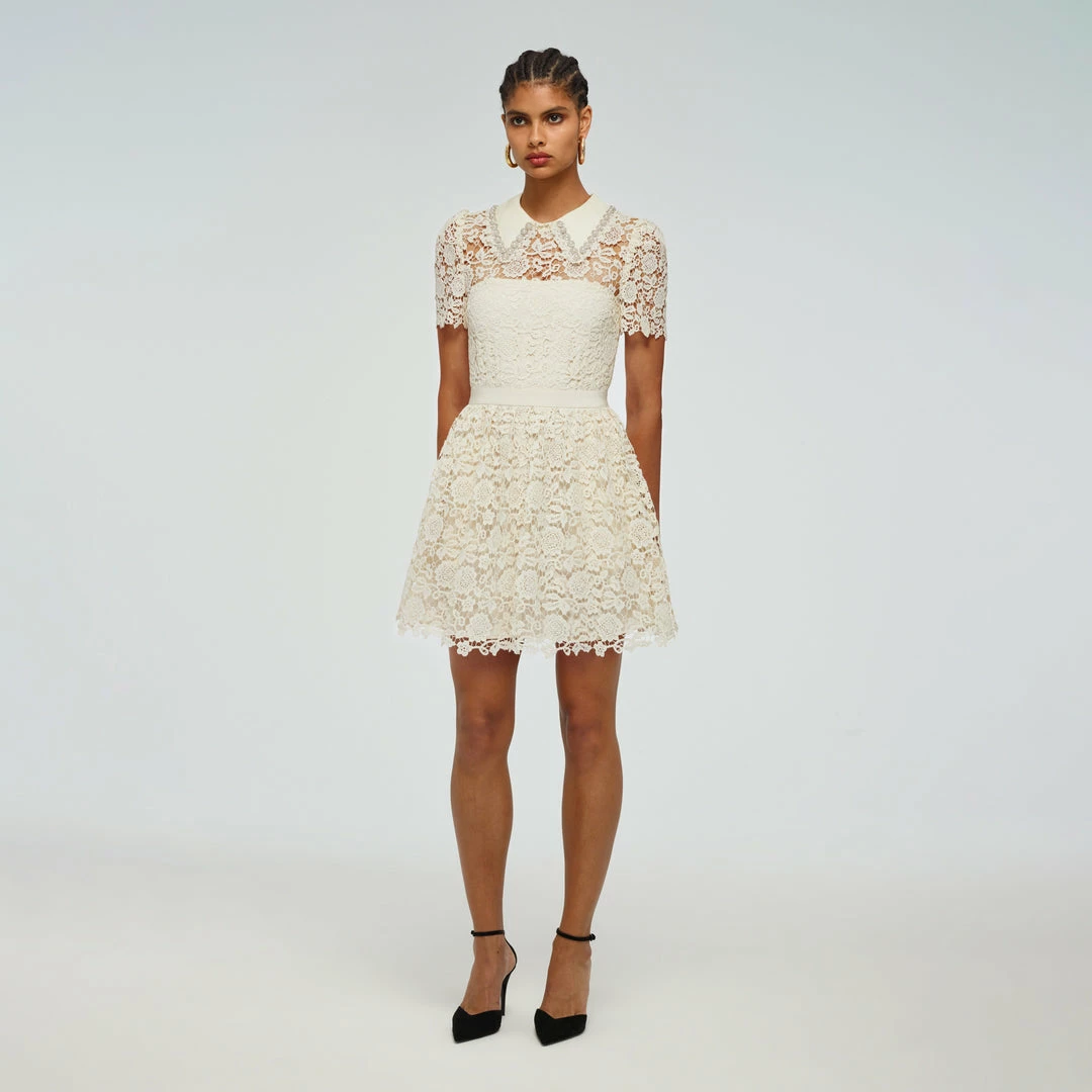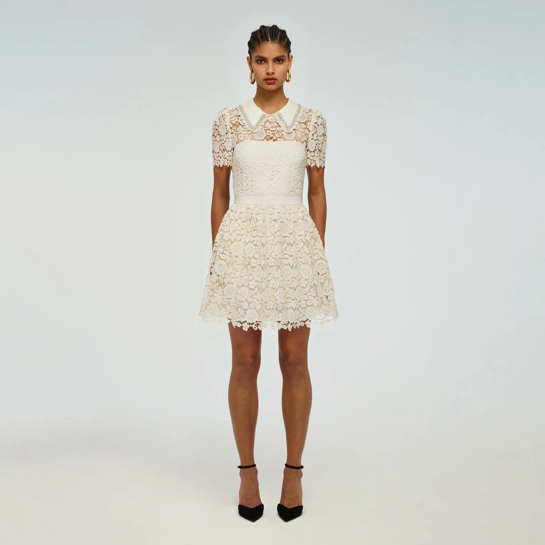 Self-portrait Ivory Guipure Mini Dress READY TO WEAR