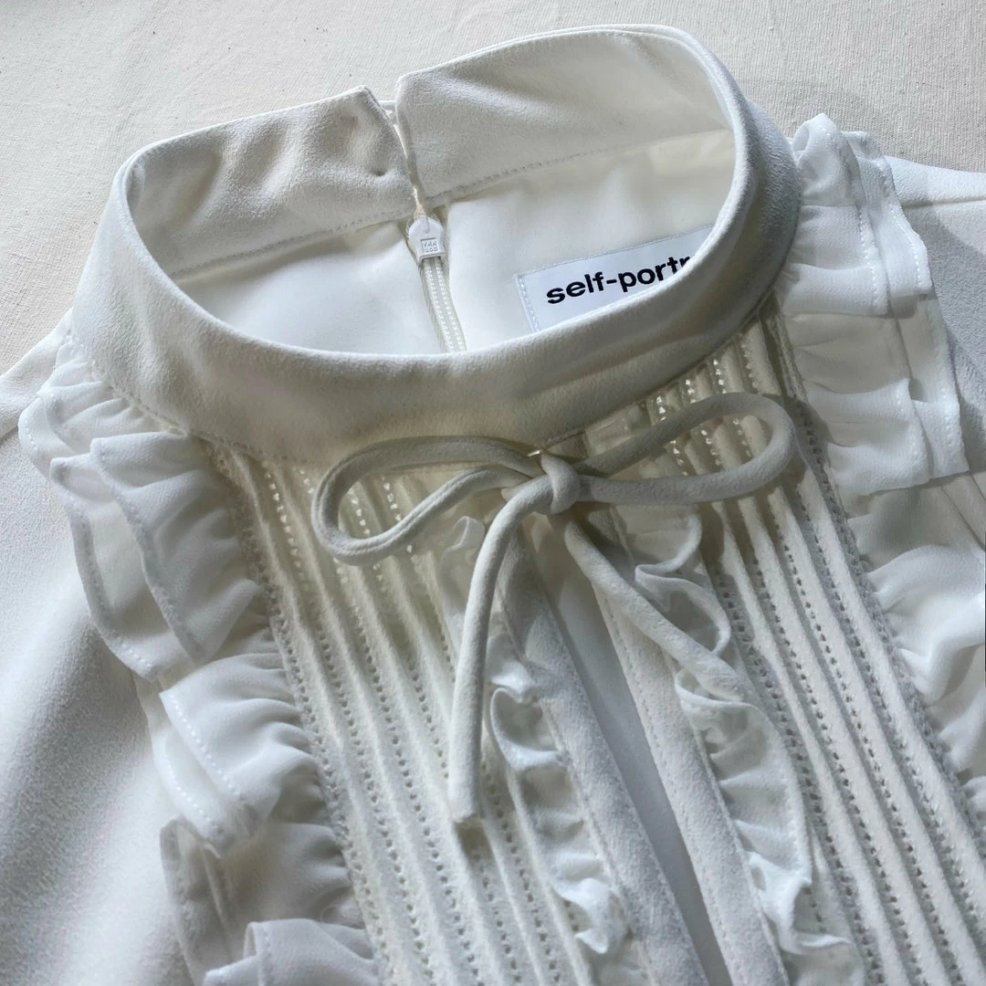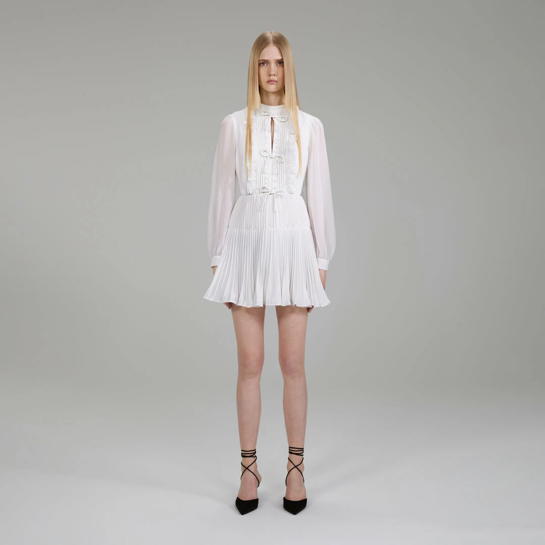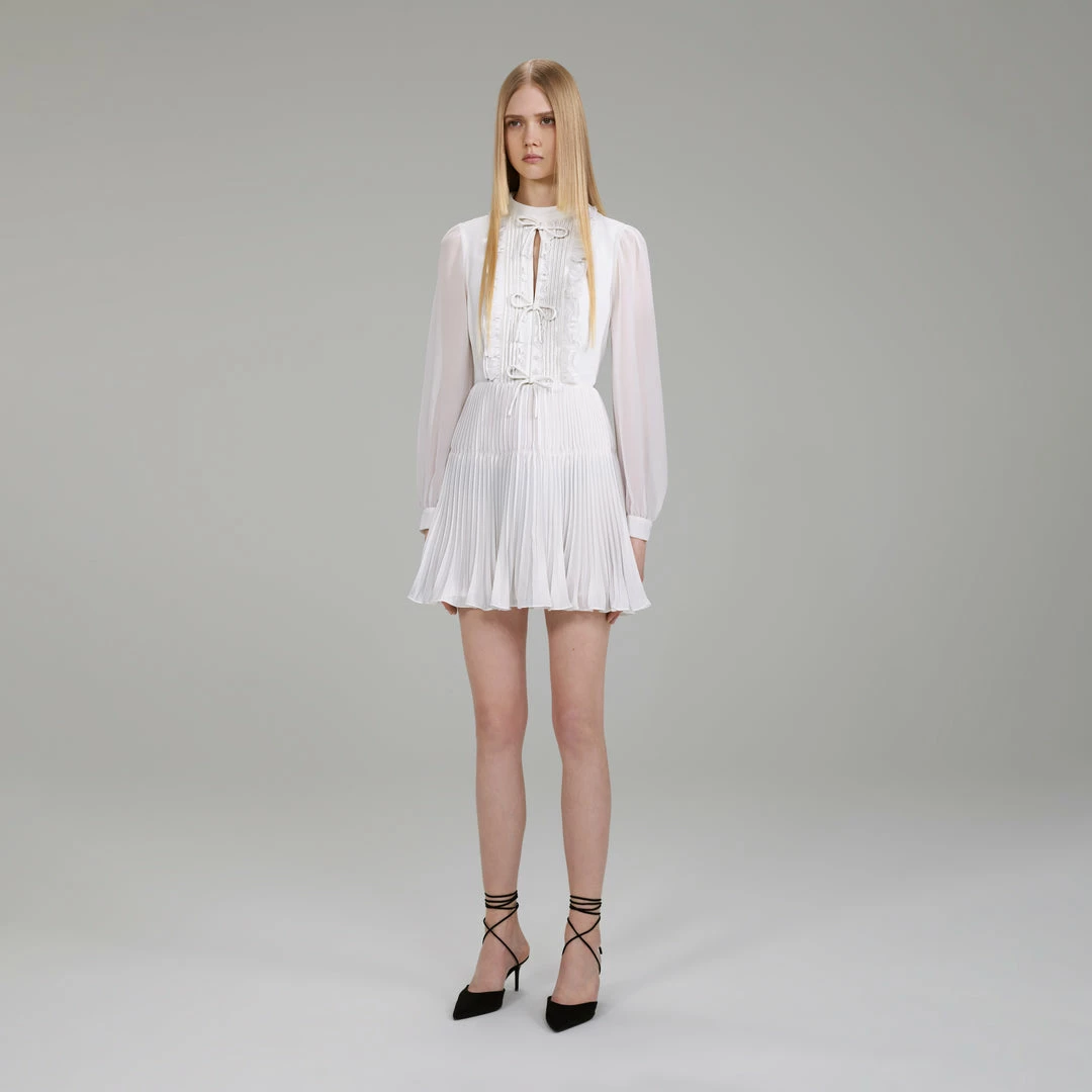 Self-portrait Ivory Ruffled Bib Mini Dress