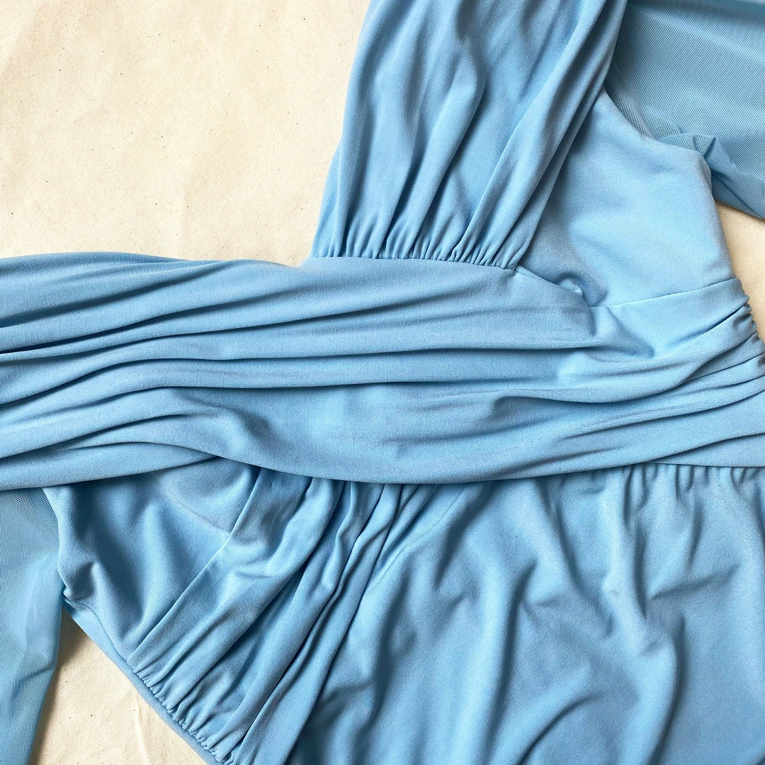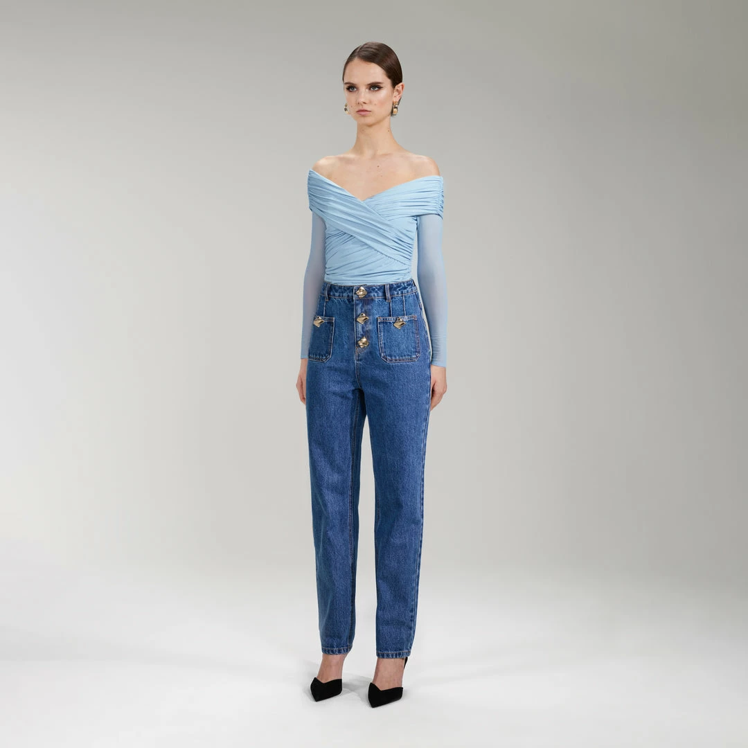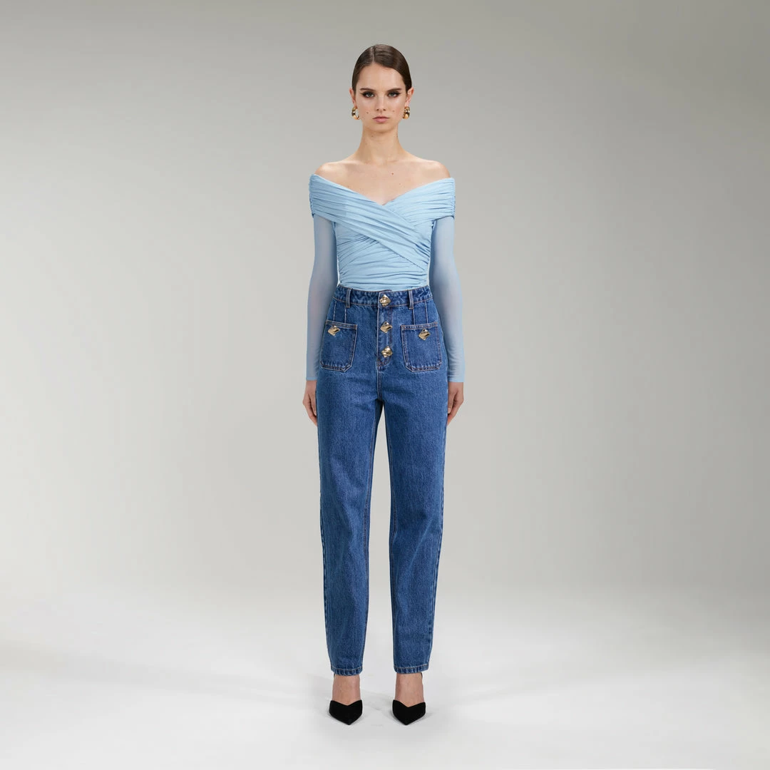 Put your shoulders on show and don this flattering top in a serene shade of blue. Classical draping, combined with heavy stretch jersey, gives it a slim yet effortless ruched silhouette. Style it with a midi skirt for a polished work-ready outfit, and switch it up with high-waisted denim for a dose of casual cool. Check the Size Guide to find your perfect fit.
