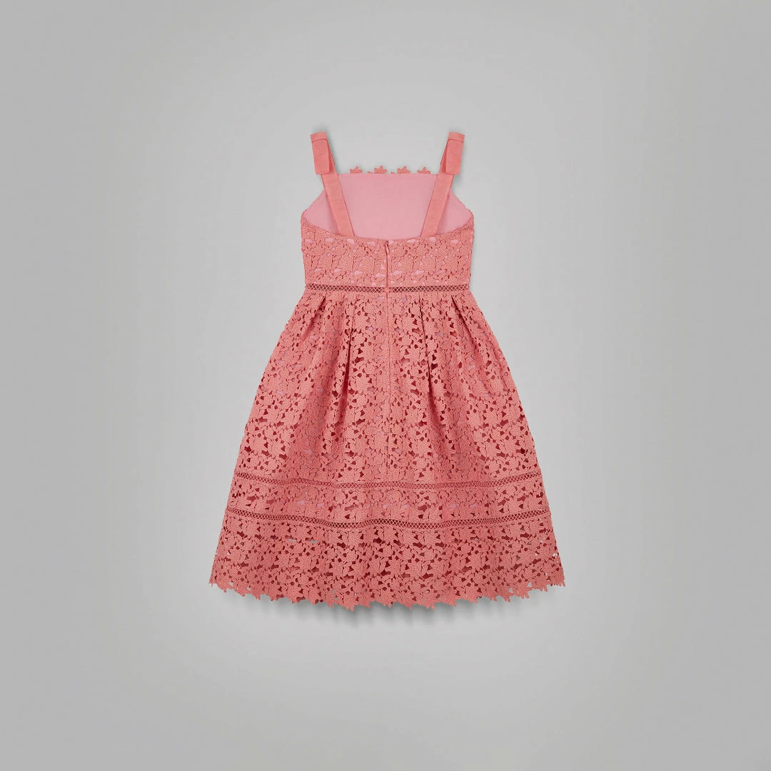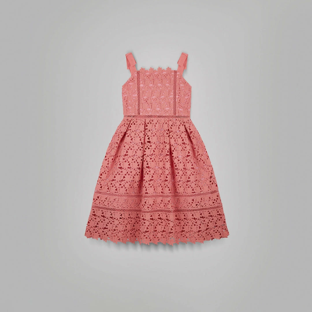 This kids midi dress is cut from our iconic azaelea lace. The dress features bow straps and the front neckline is framed with a scallop edge. This style is designed with our signature inserted lace trims. Check the Size Guide to find your perfect fit.
