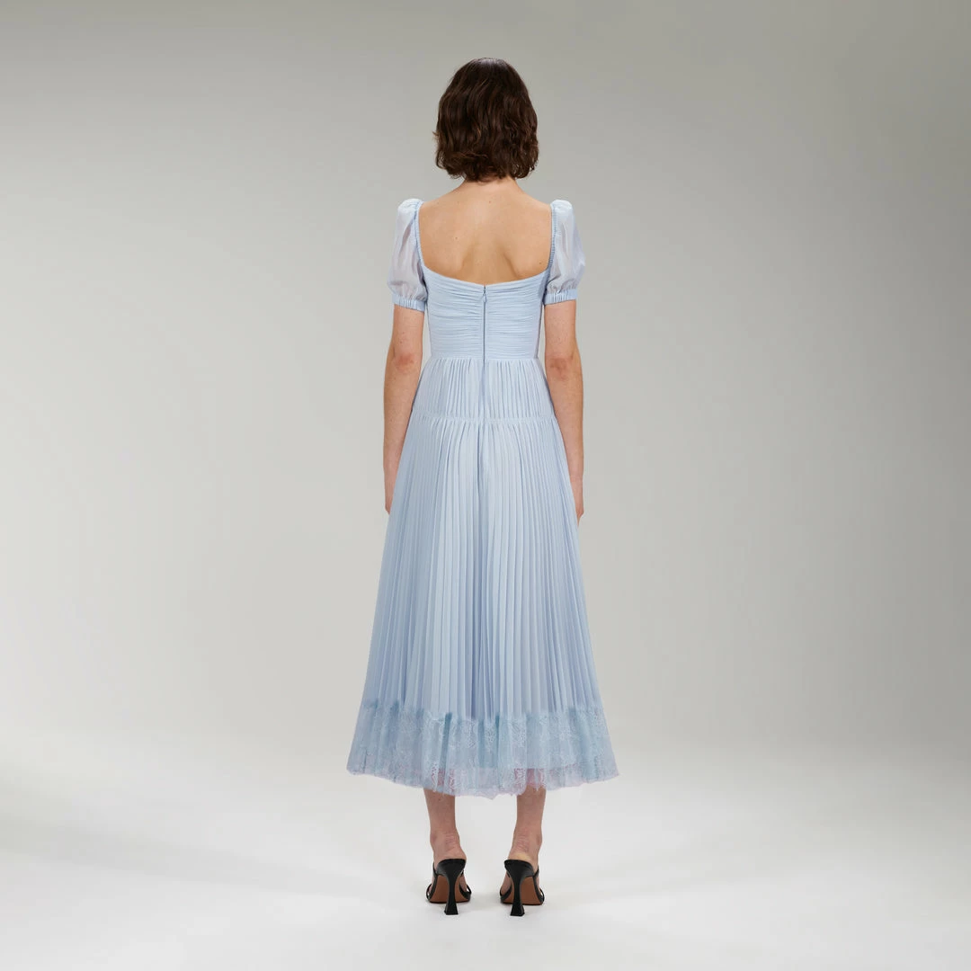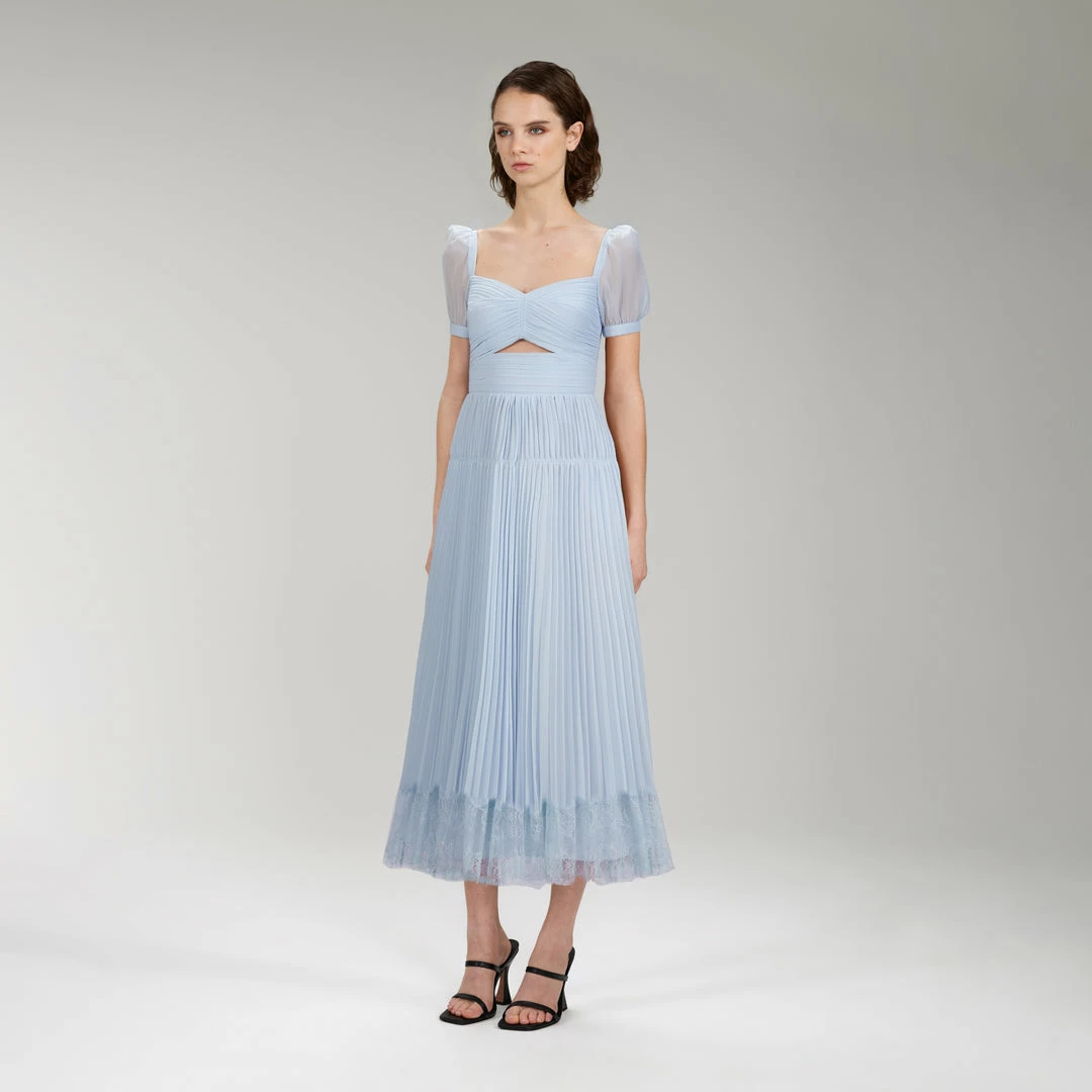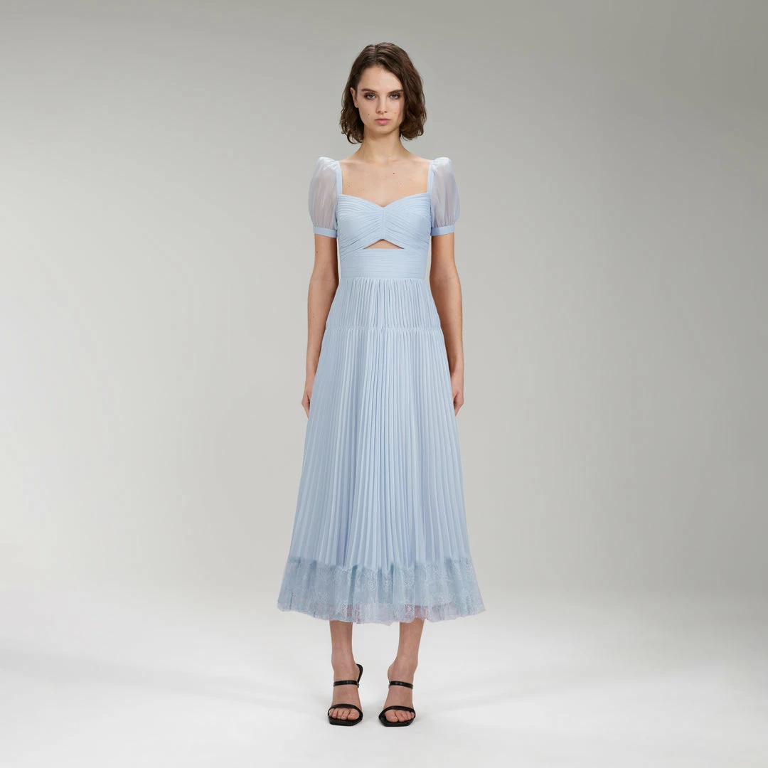 Self-portrait Light Blue Chiffon Cut Out Midi Dress NEW ARRIVALS