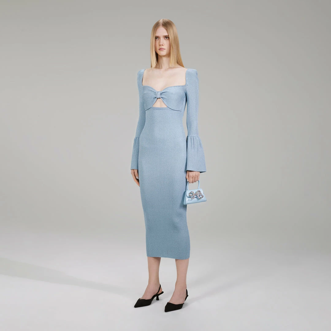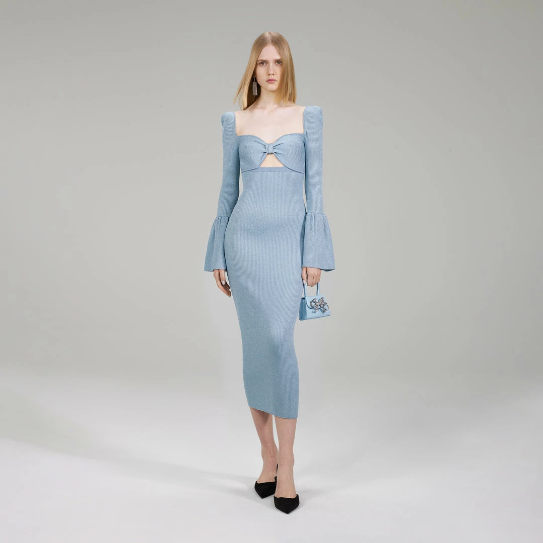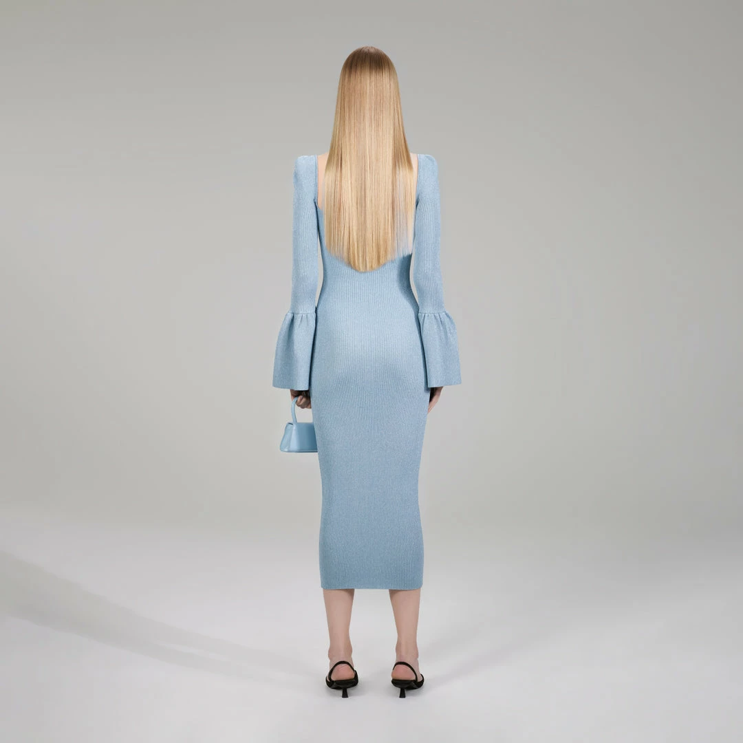 Self-portrait Light Blue Lurex Knit Midi Dress NEW ARRIVALS