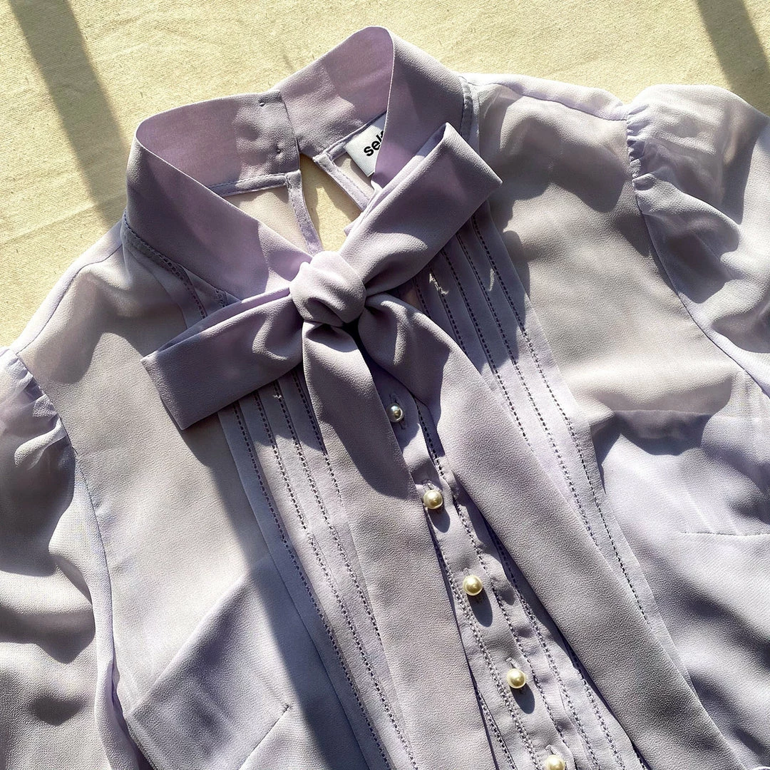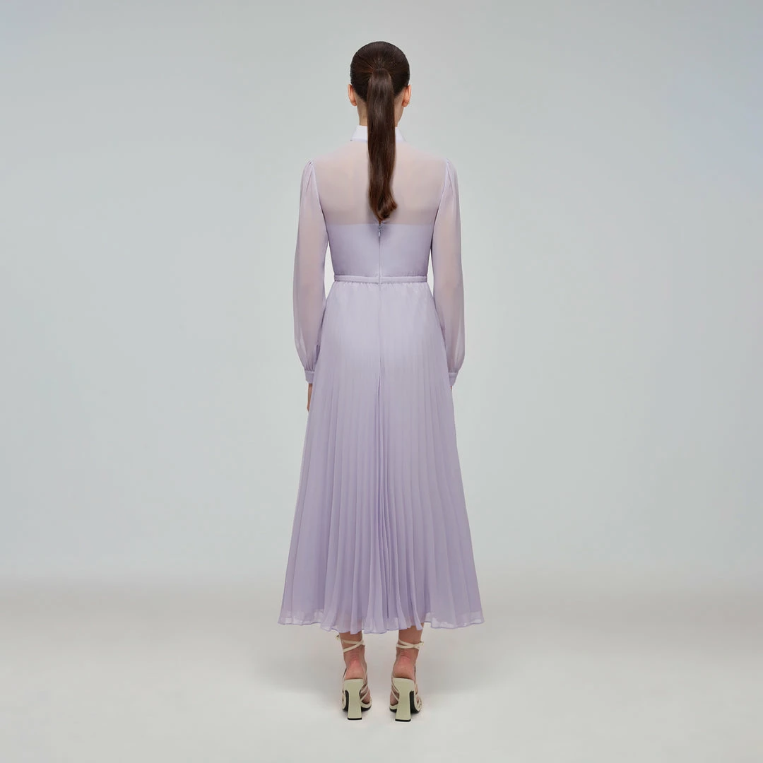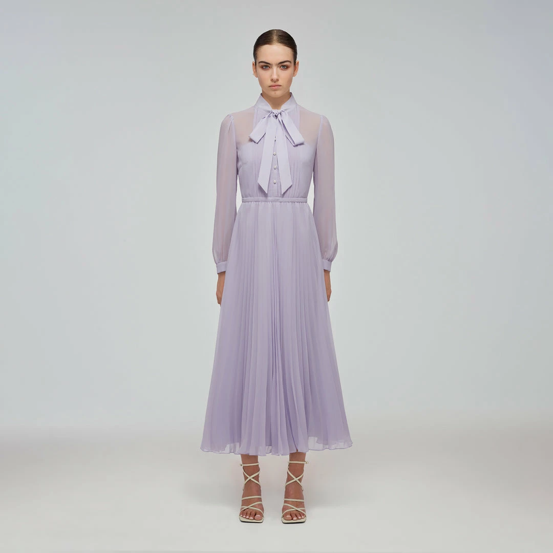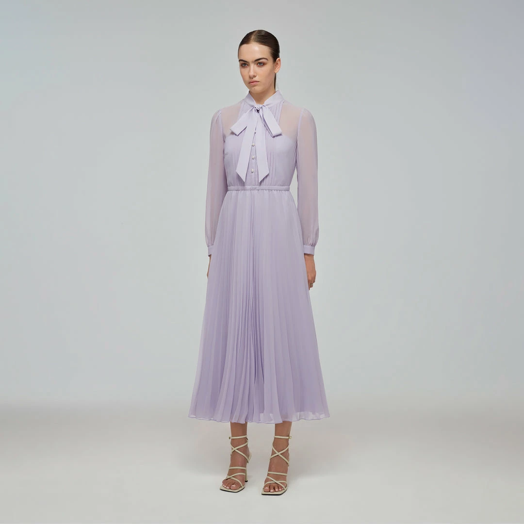 Self-portrait Lilac Chiffon Pussy Bow Dress READY TO WEAR