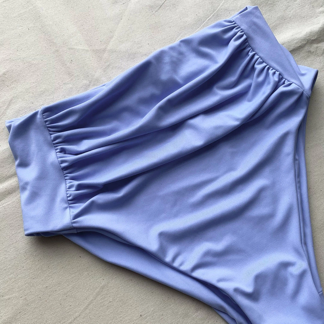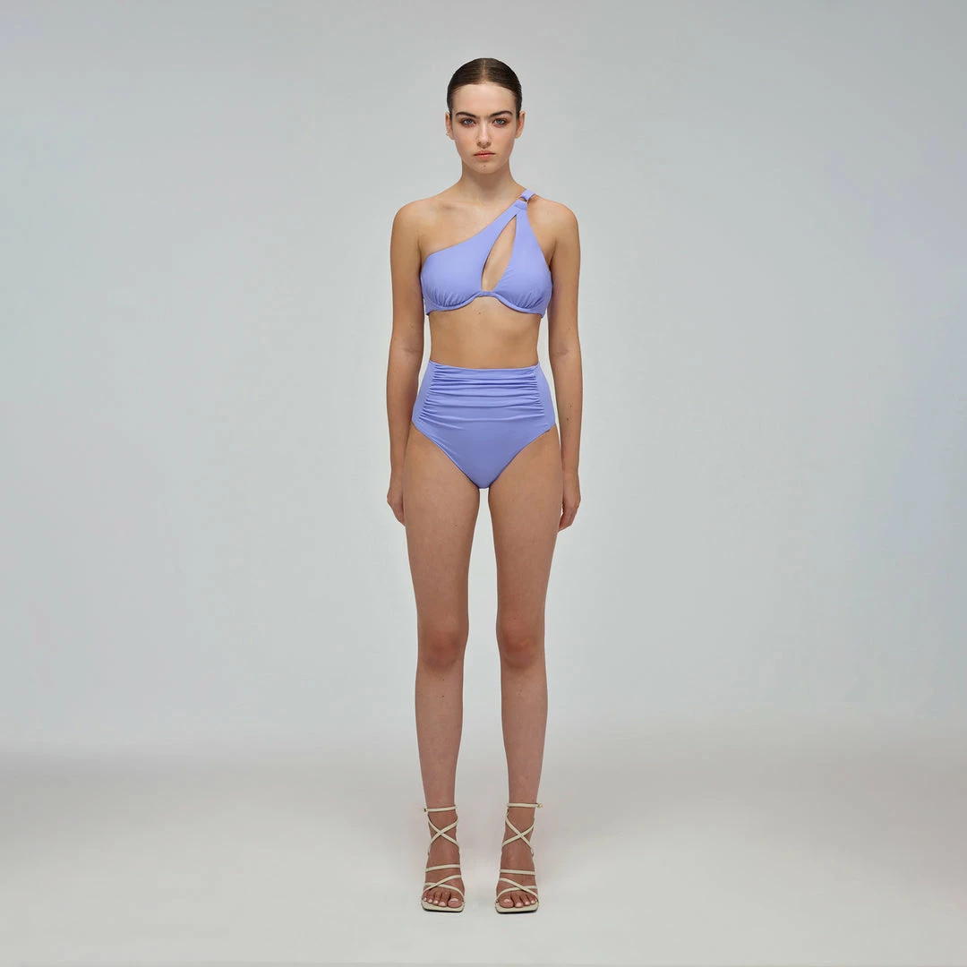 These lavender bikini briefs are cut to a high waist and detailed with ruching. Check the Size Guide to find your perfect fit.
