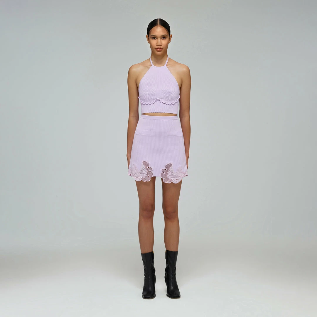 Self-portrait Lilac Inserted Lace Knit Mini Skirt READY TO WEAR