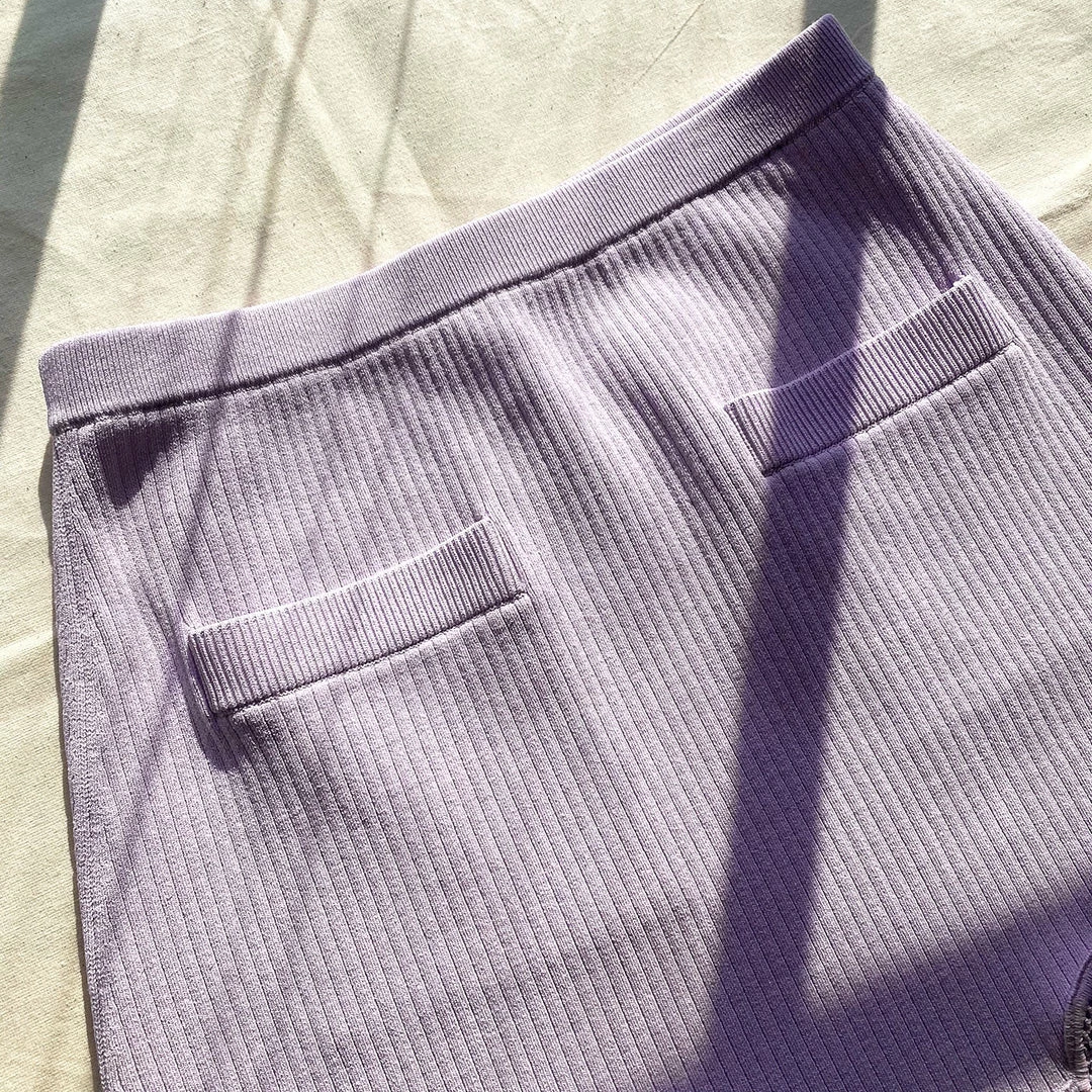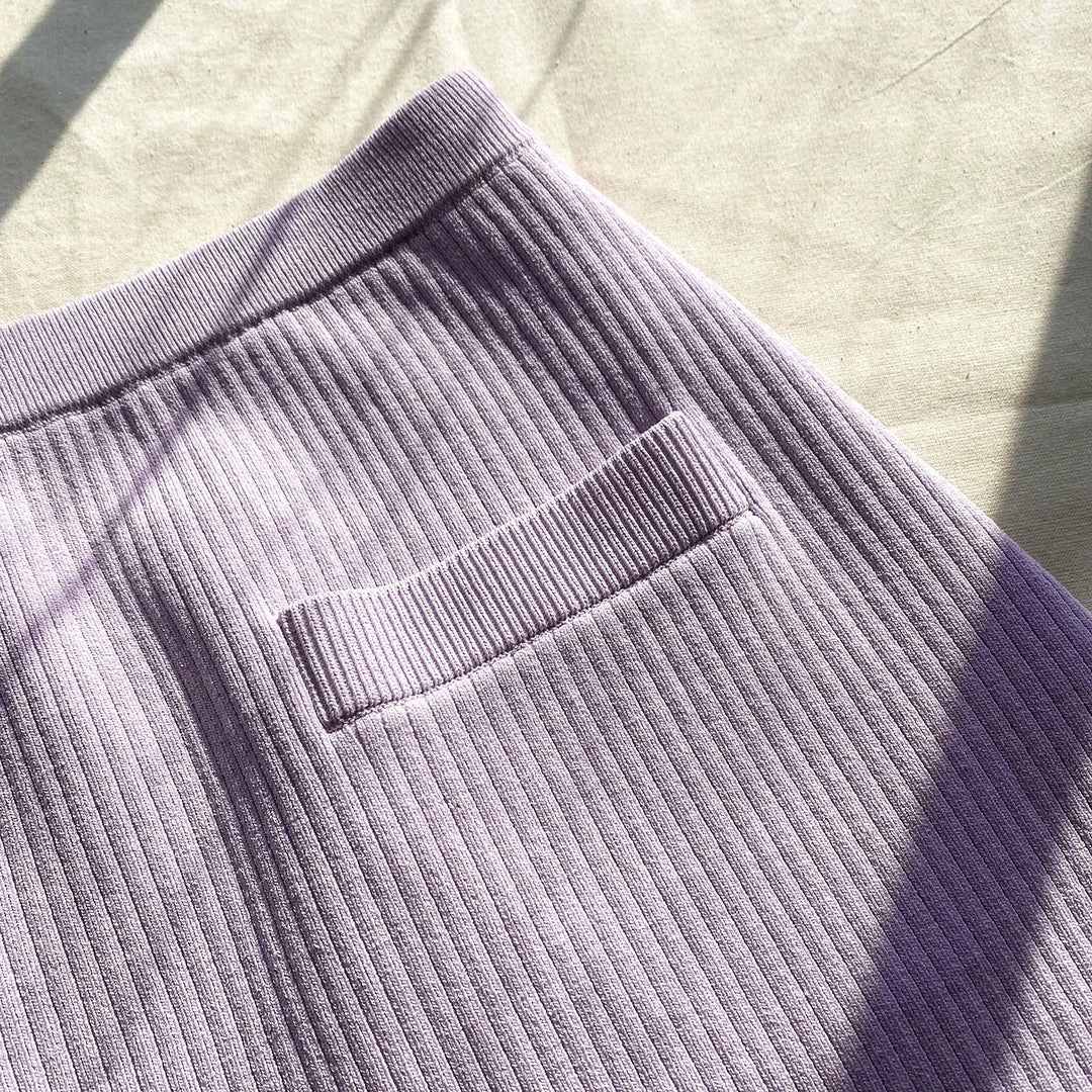This lavender ribbed knit mini skirt is designed with an inserted lace trim at the hem. It features front pockets and falls to a fitted mini length. Check the Size Guide to find your perfect fit.