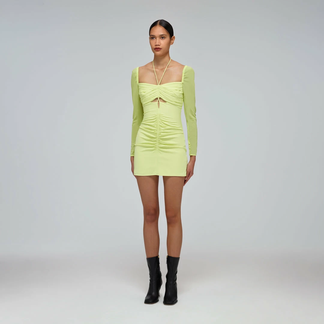 Self-portrait Lime Stretch Crepe Cut Out Mini Dress READY TO WEAR
