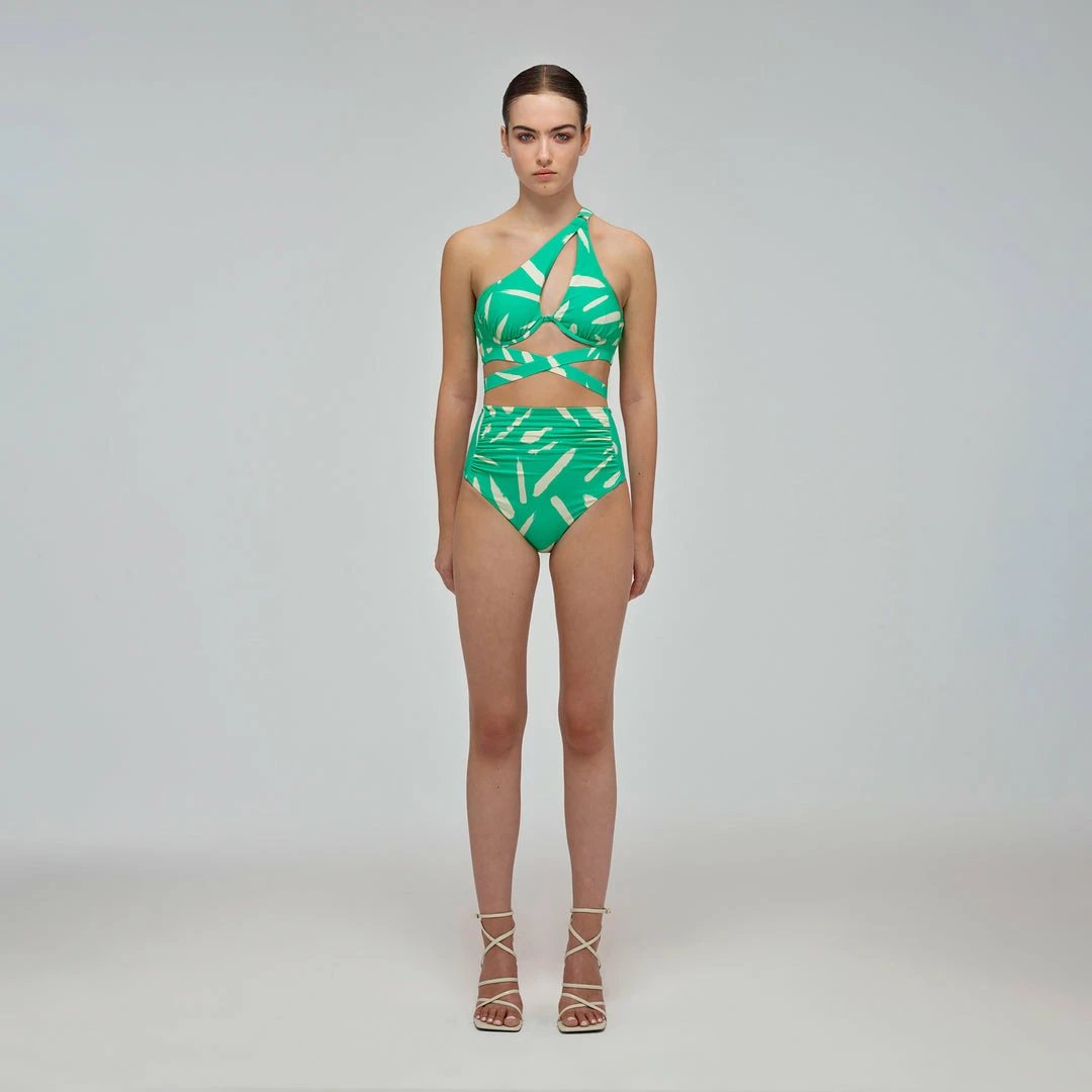 Self-portrait Mint Brushstroke High Waisted Brief Swim & Resort