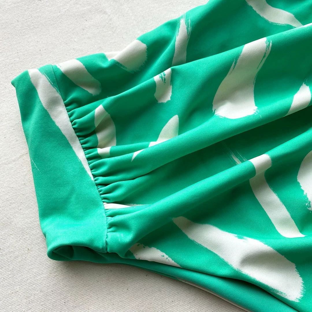 These high waisted briefs are patterned in a green brushstroke leaf design and are detailed with ruching. Check the Size Guide to find your perfect fit.