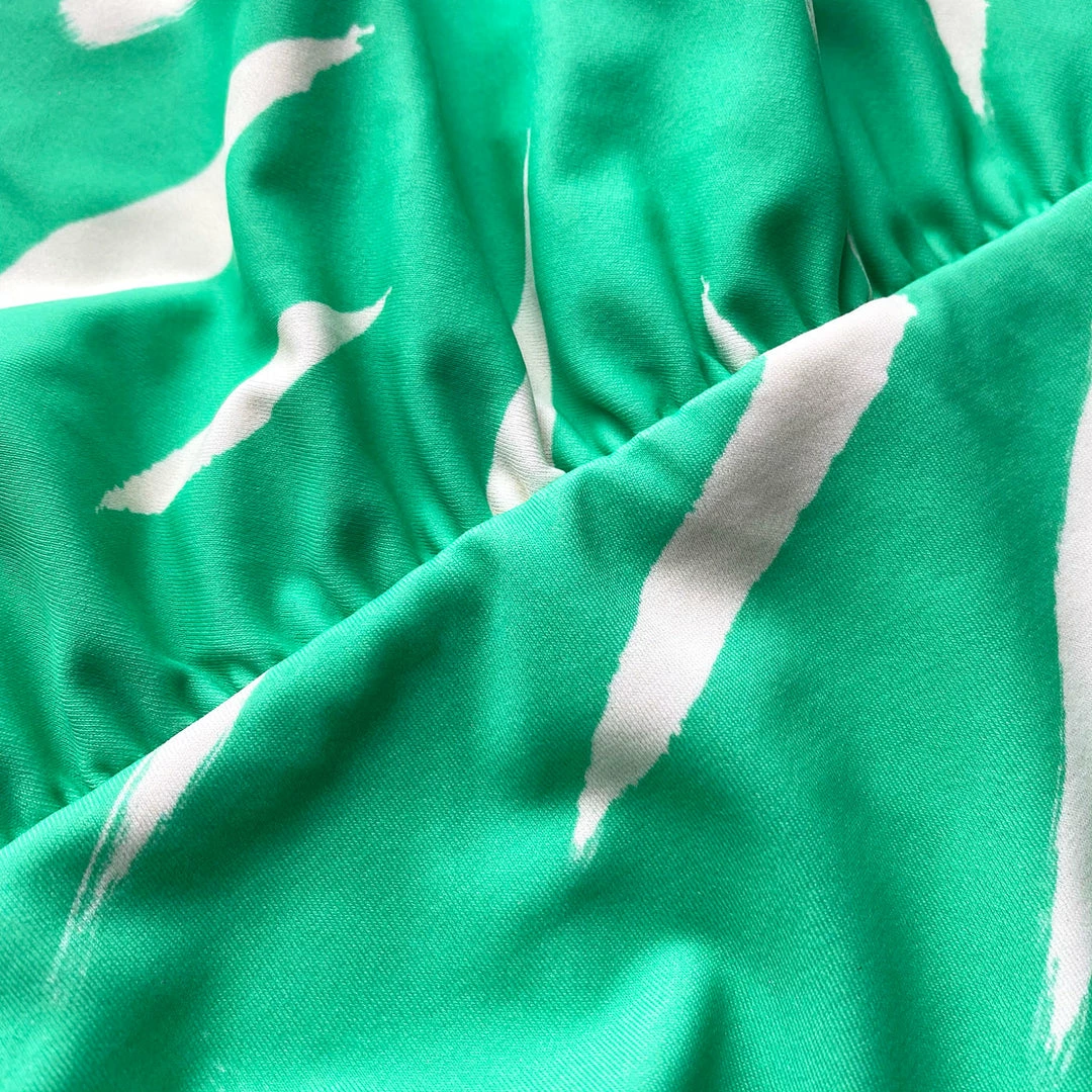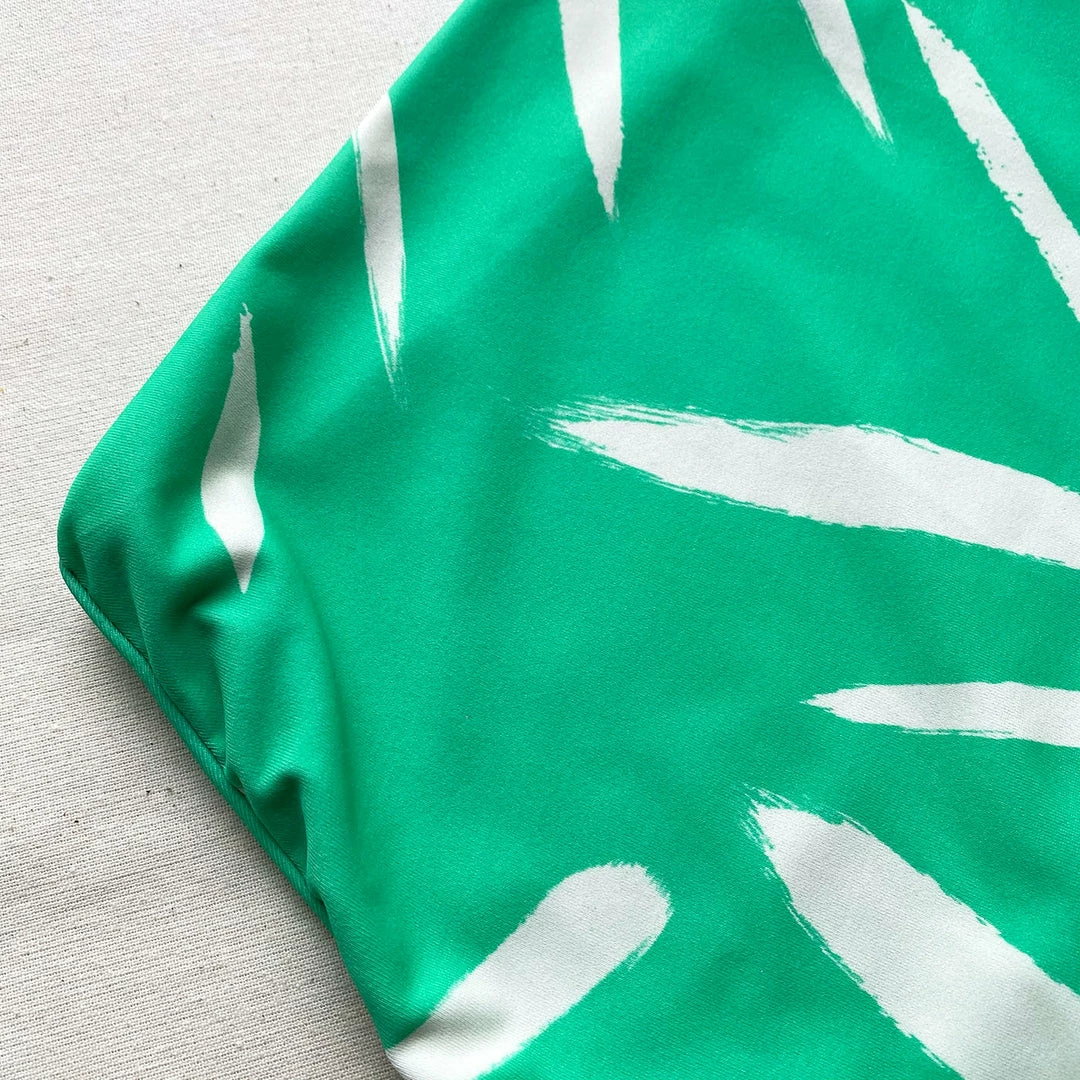 This one shoulder green brushstroke print swimsuit is finished with a black grosgrain tie at the shoulder. It features a side cut out and has ruching details throughout. Check the Size Guide to find your perfect fit.
