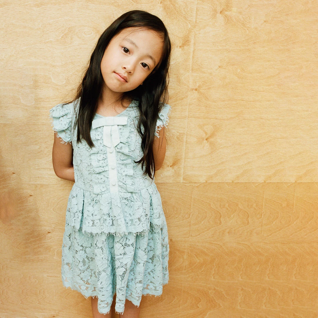 As sweet and refreshing as a scoop of mint chocolate chip, this dress is cut from organic cotton lace. Accented by a bow at the neck and short sleeves, it falls to a full knee-length skirt, complete with a graceful peplum. Style it with flats or trainers for your next trip to the ice cream shop. Check the Size Guide to find your perfect fit.