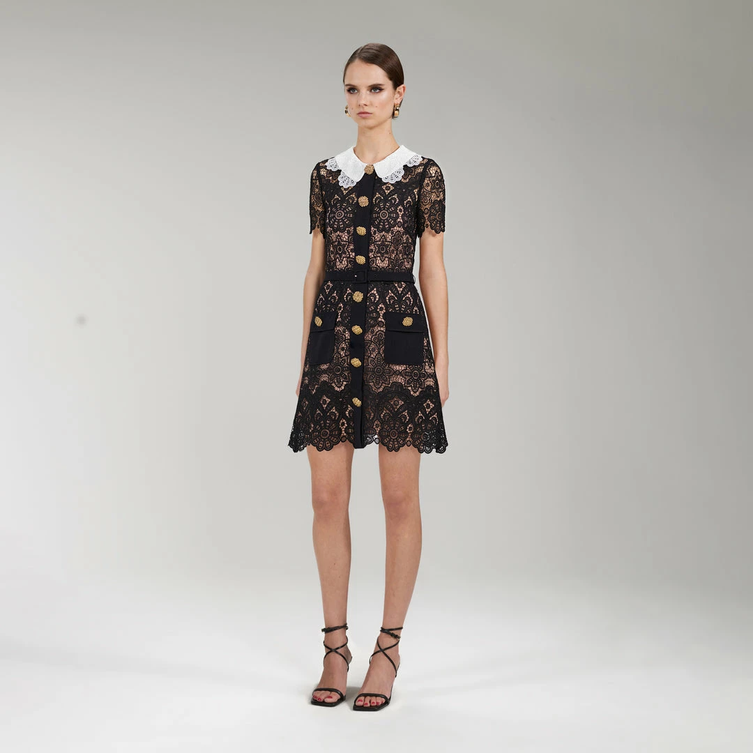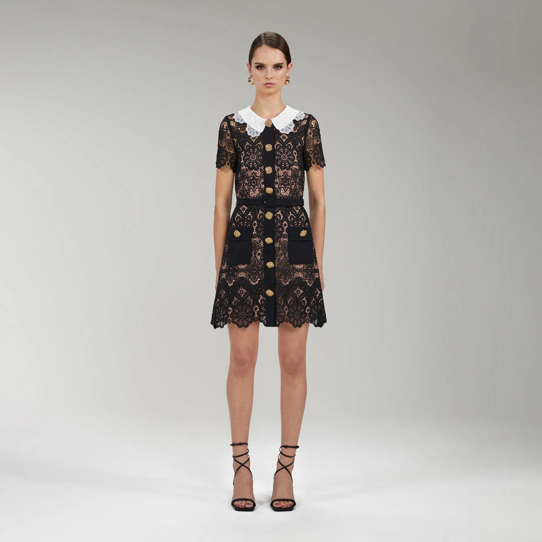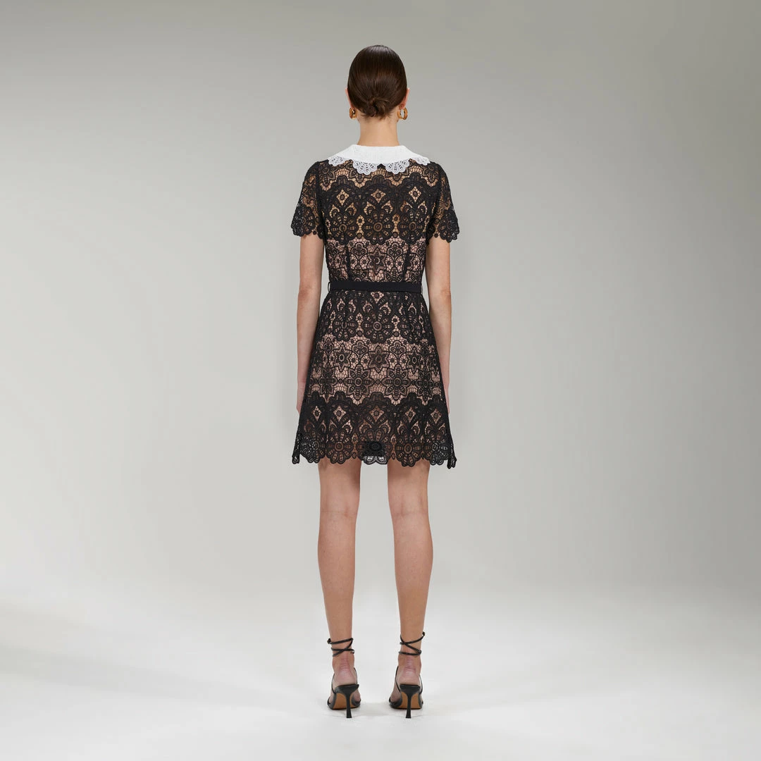 Self-portrait NEW ARRIVALS Black Floral Guipure Mini Dress