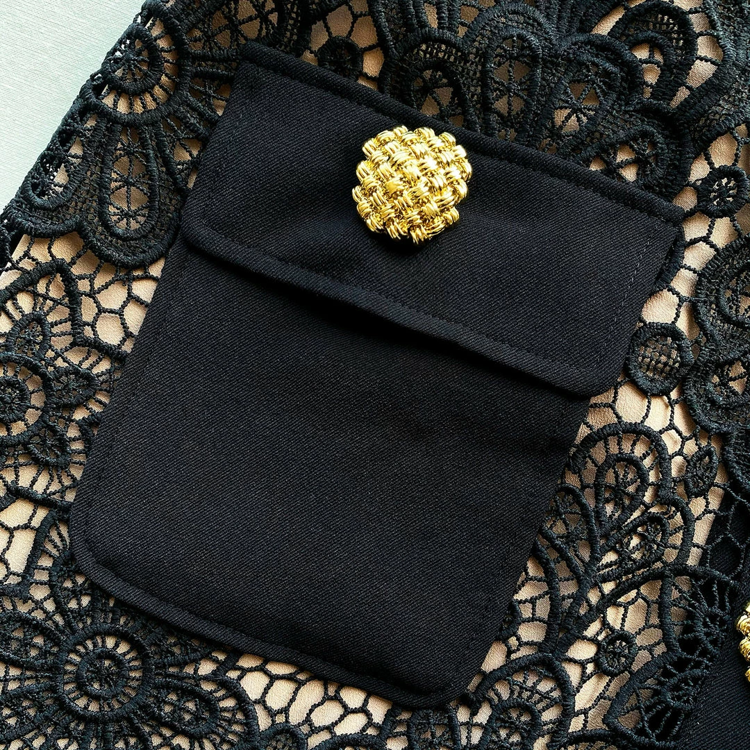 There are few conundrums a little black dress can’t fix. This number, with its floral guipure lace and statement collar, is a case in point. Its A-line silhouette and flared skirt are tailored to flatter your frame whilst patch pockets and buttons down the front allow for practicality and ease. Throw it on for brunch with the girls, or stun a lucky someone on your next dinner date. Check the Size Guide to find your perfect fit.