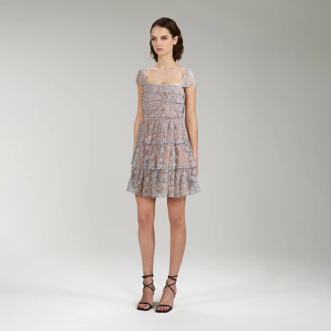 Self-portrait NEW ARRIVALS Embroidered Blossom Layered Bodice Mini Dress