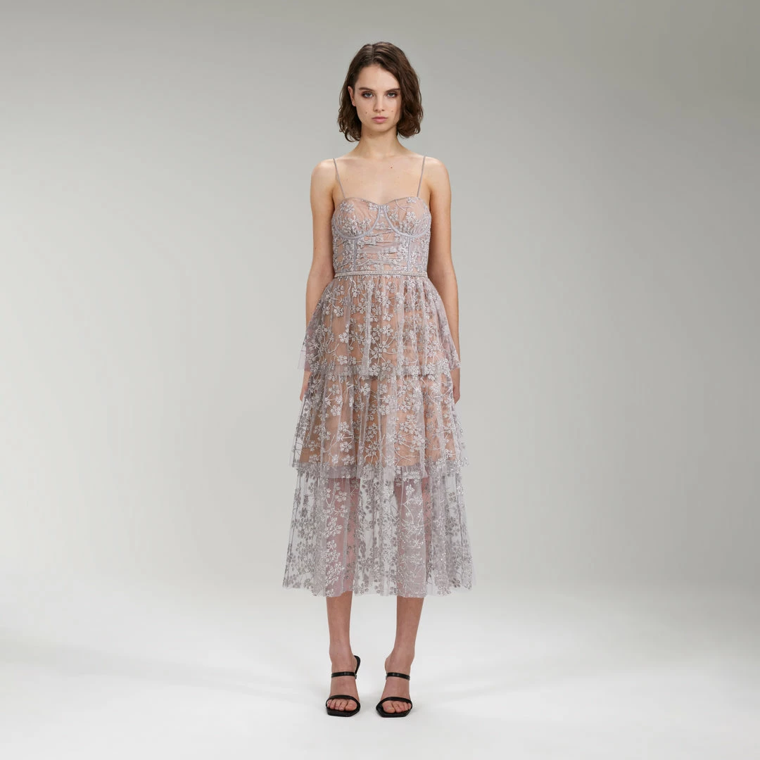 Self-portrait NEW ARRIVALS Embroidered Blossom Midi Dress
